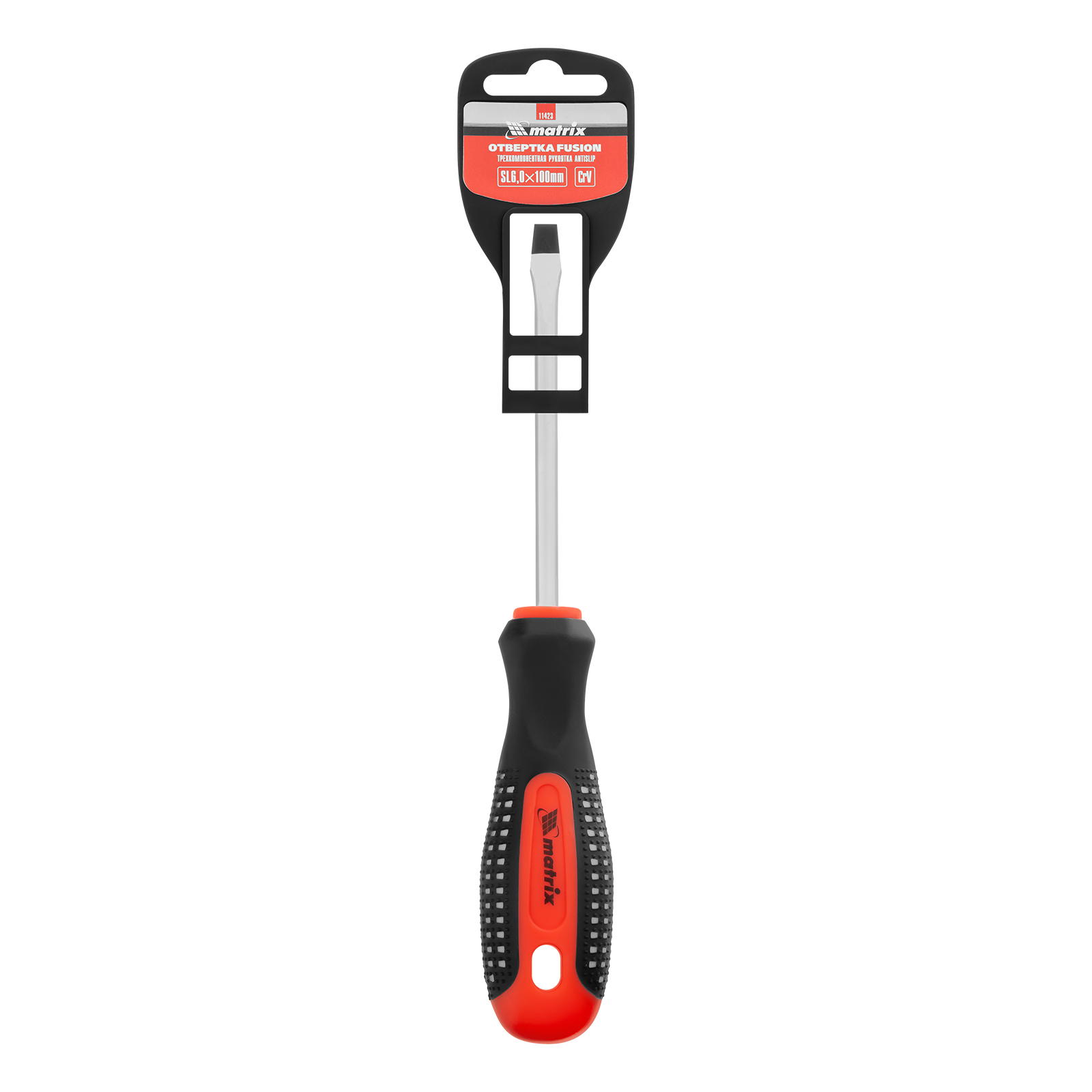Отвертка Fusion, SL6 х 100 мм, CrV, трехкомпонентная рукоятка "Anti slip" Matrix
