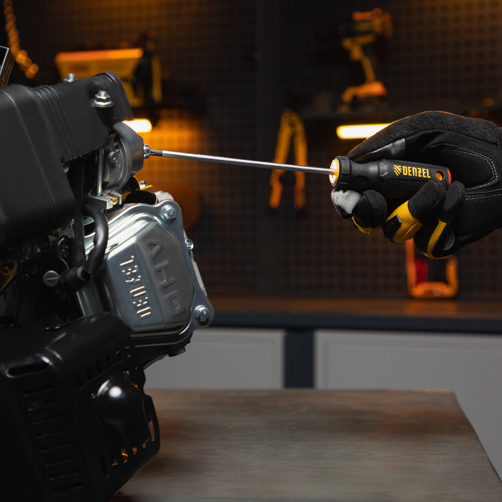 - Удобное хранение — отверстие в рукоятке позволяет подвешивать отвертку на крючок или скобу.