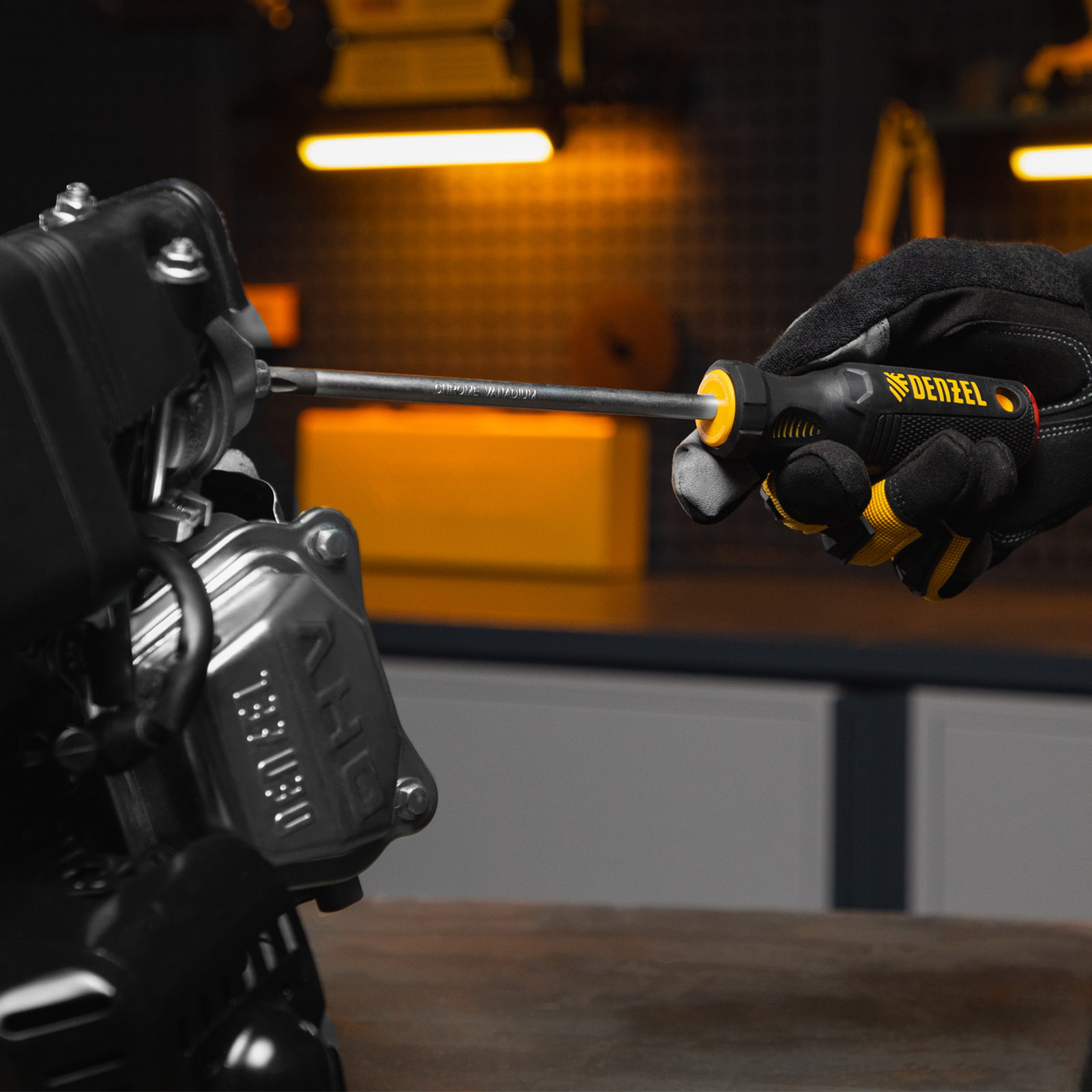 - Удобное хранение — отверстие в рукоятке позволяет подвешивать отвертку на крючок или скобу.