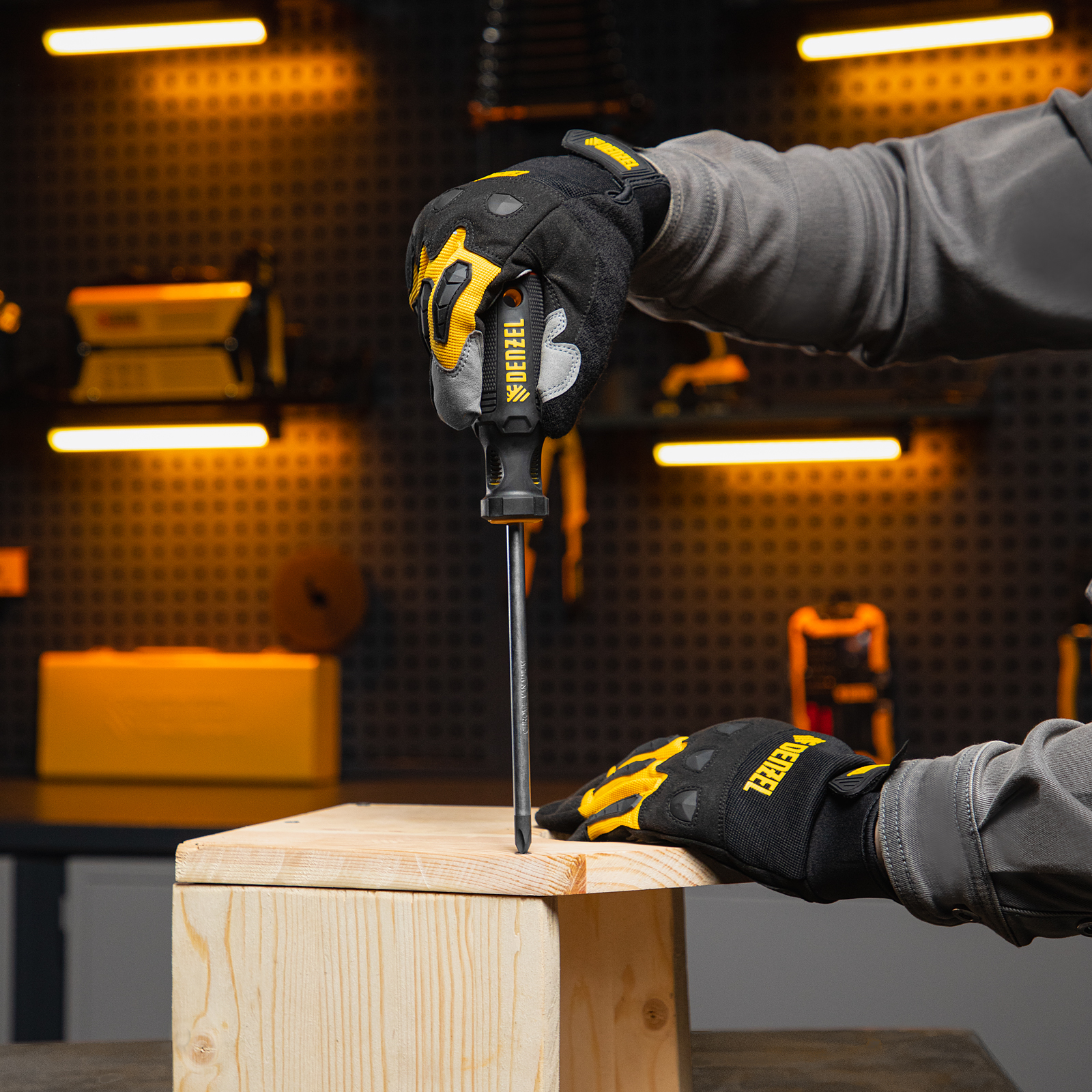 - Продуманная маркировка — цветное кольцо на затыльнике соответствует типоразмеру отвертки, что облегчает поиск нужного инструмента.