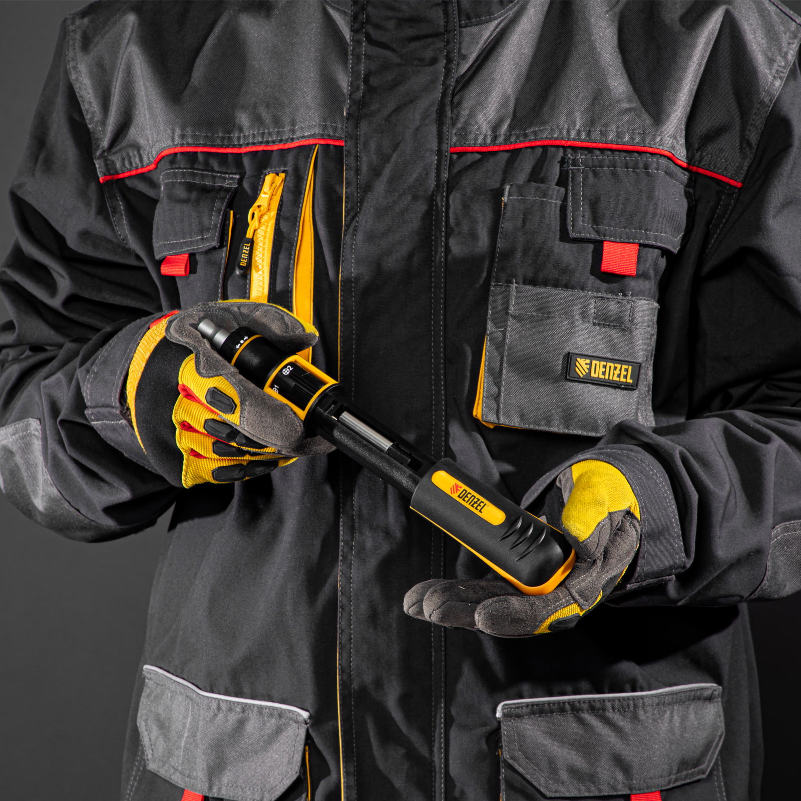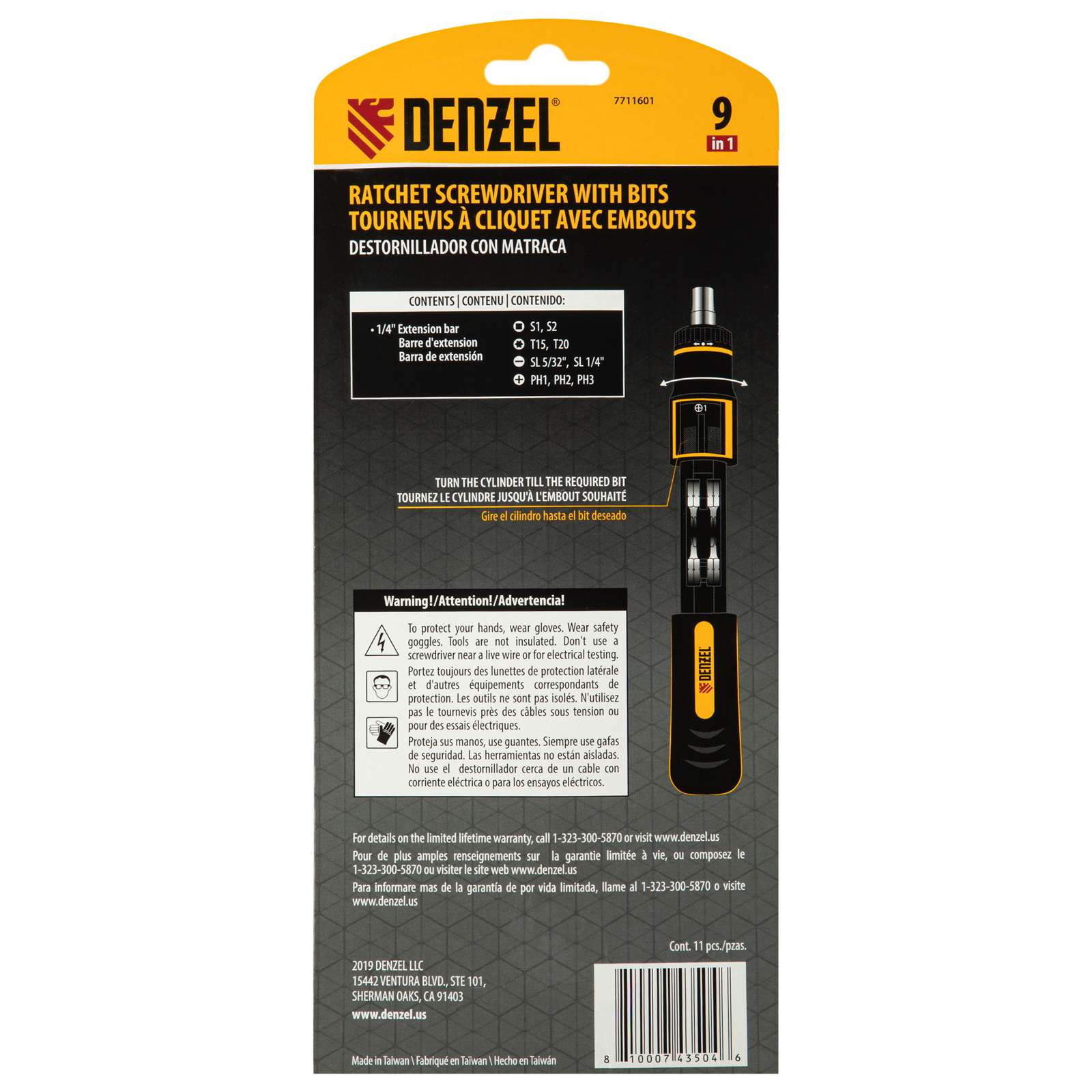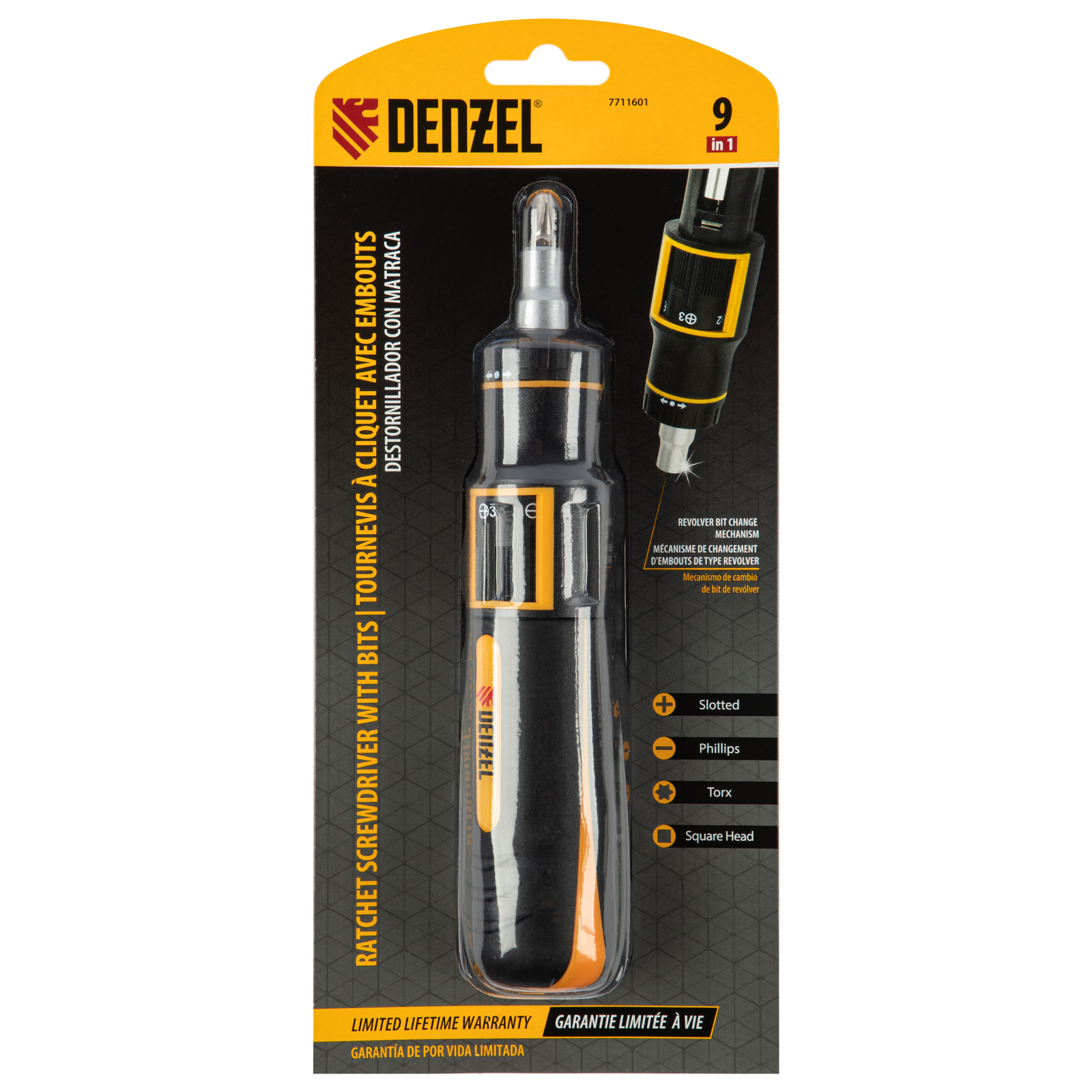 Отвертка реверсивная с револьверным механизмом, 11 шт, сталь S2 Denzel