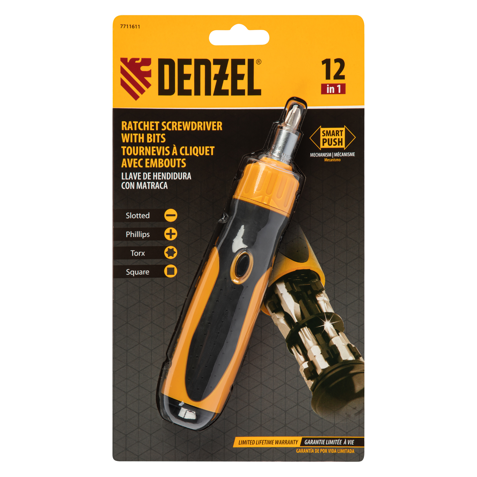 Отвертка реверсивная, механизм SmartPush 12 шт, S2 Denzel