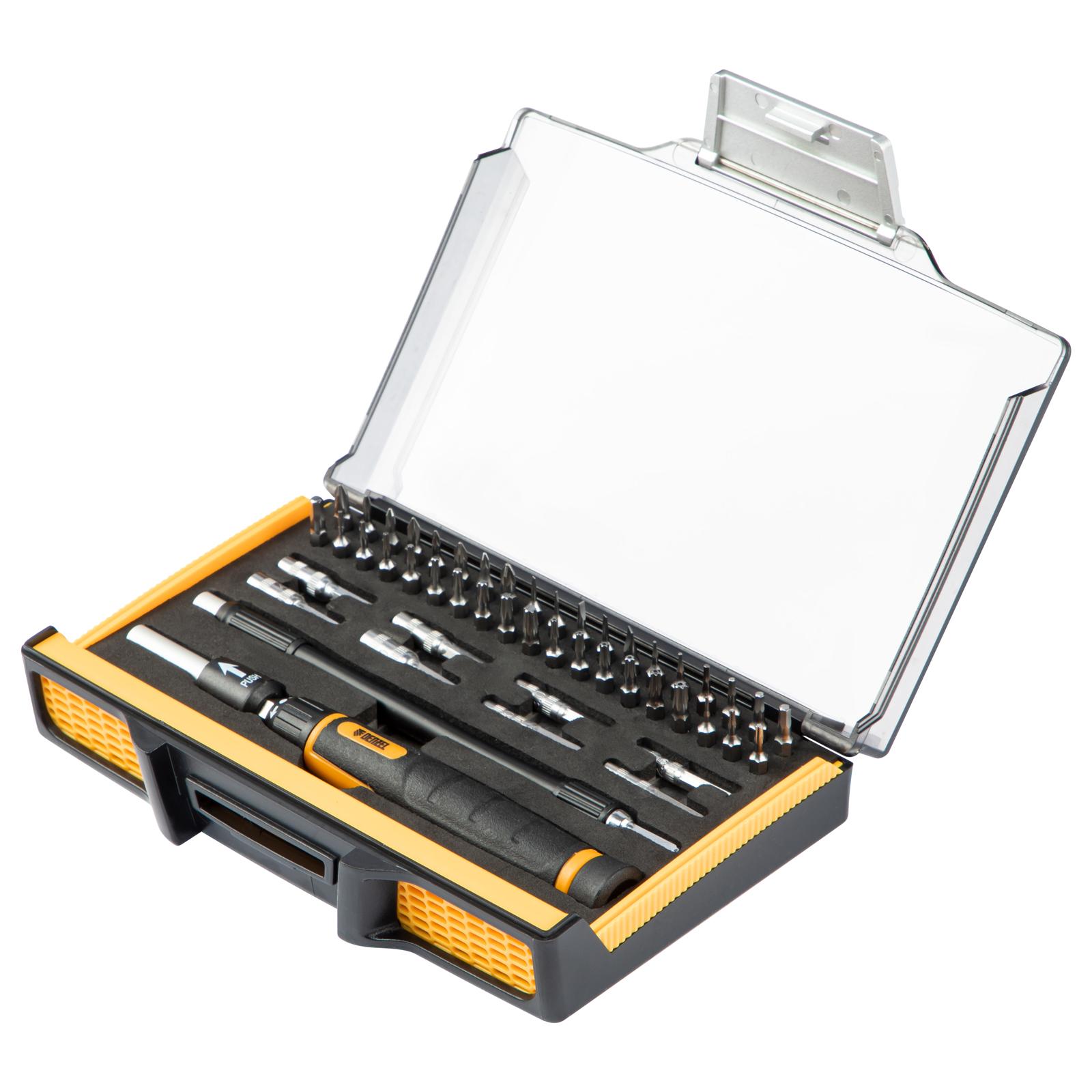 • Продуманное хранение и транспортировка — набор упакован в пластиковый жесткий кейс с надежной защелкой.