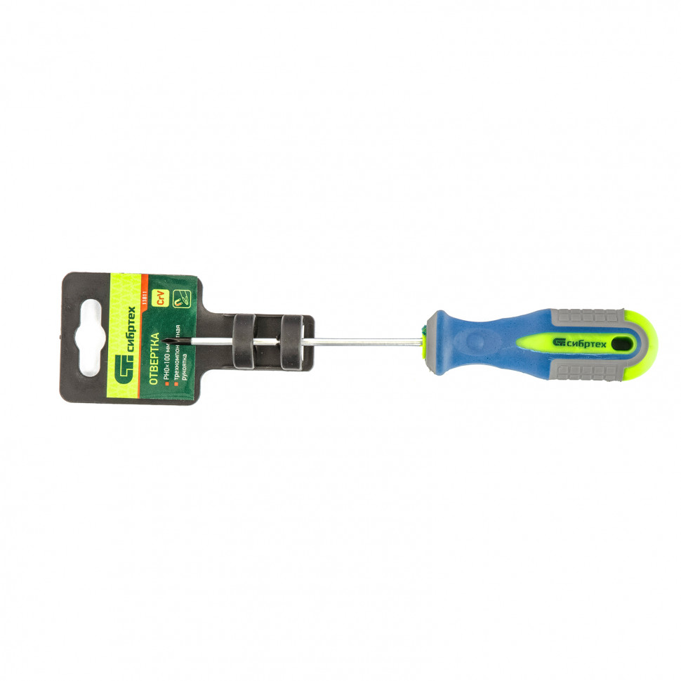 Отвертка Сибртех 11811, PH0 х 100 мм, из стали CrV, с 3-х компонентной рукояткой, пригодится частным мастерам для монтажа/демонтажа крепежных элементов типоразмера PH0. Она поможет произвести ремонтные и монтажные работы дома, в гараже, на даче. Благодаря стержню длиной 100 мм отверткой можно работать в углублениях.