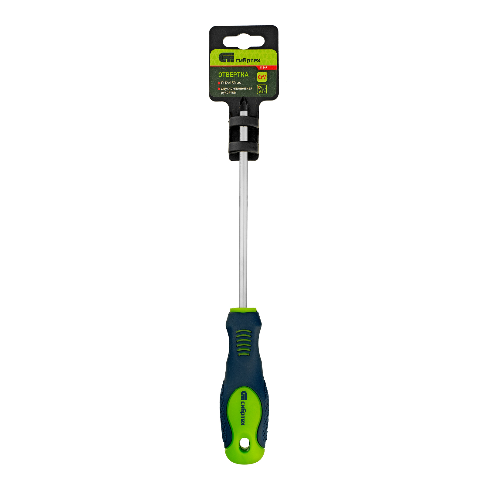 Отвертка, PH2 х 150 мм, CrV, двухкомпонентная рукоятка Сибртех