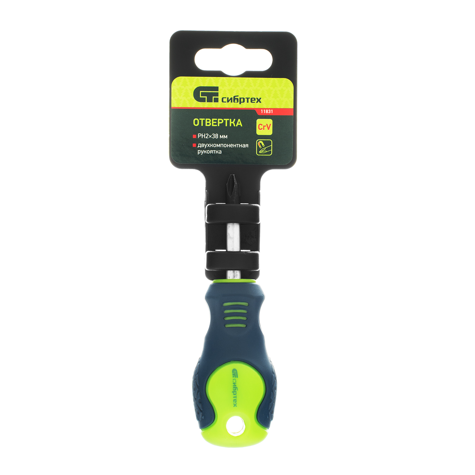 Отвертка, PH2 х 38 мм, CrV, двухкомпонентная рукоятка Сибртех