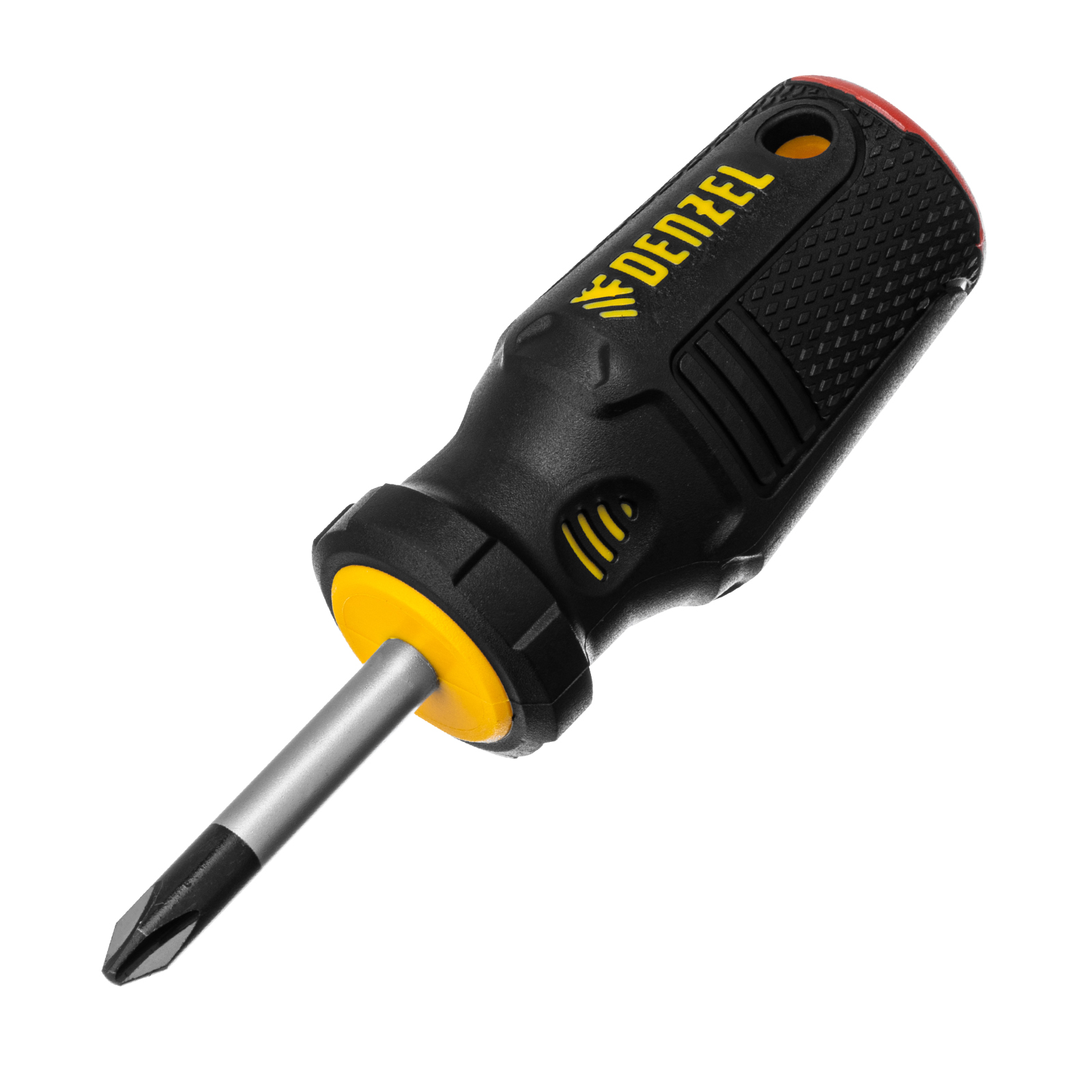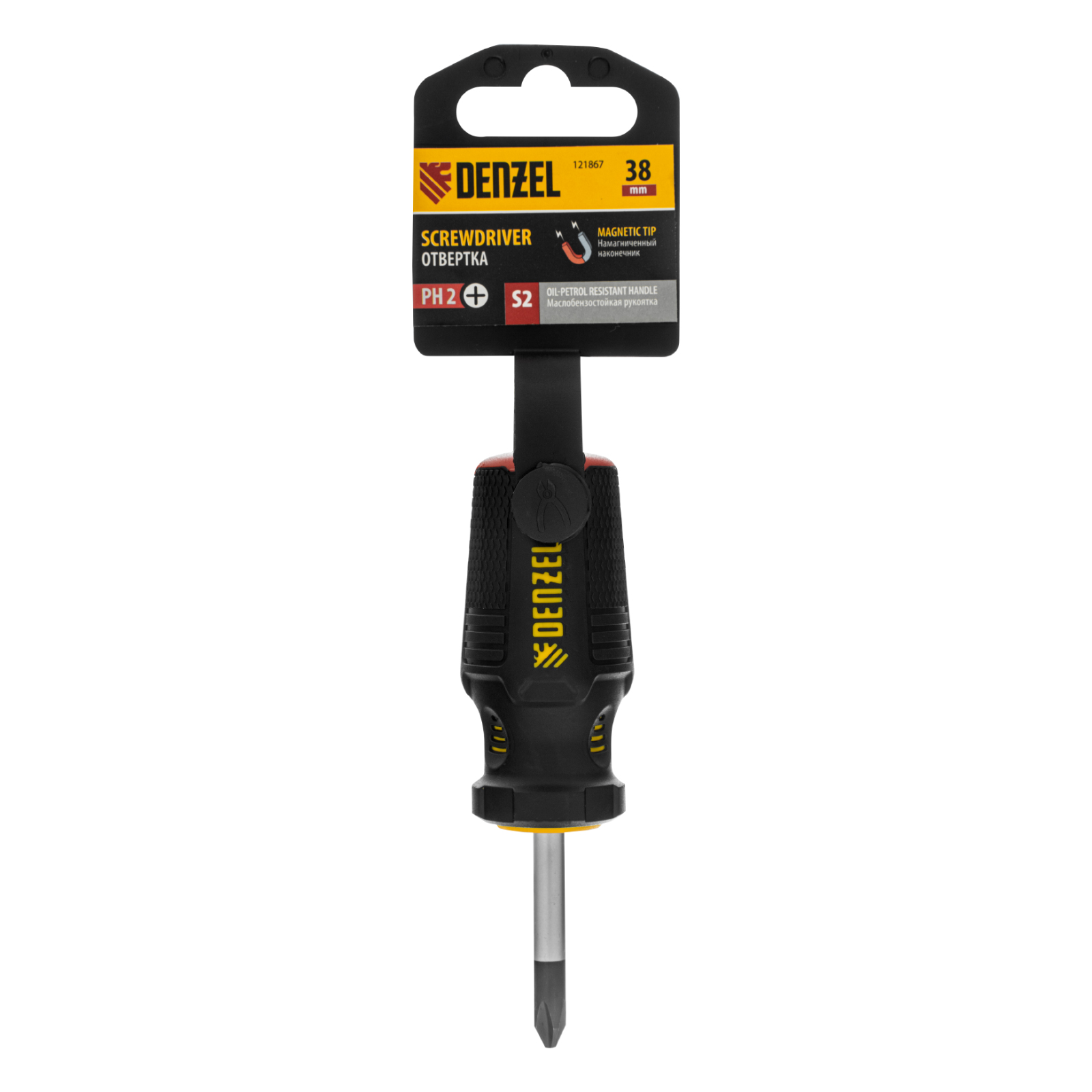 Отвертка Denzel 121867 с трехкомпонентной рукояткой, со стержнем из стали S2, длиной 38 мм, предназначена для закручивания и откручивания резьбового крепежа типа PH2. Удобна для работы в ограниченном пространстве. Высокоточный намагниченный шлиц избавляет мастера от необходимости придерживать винт или саморез рукой. Отвертка рекомендована для профессионального использования.