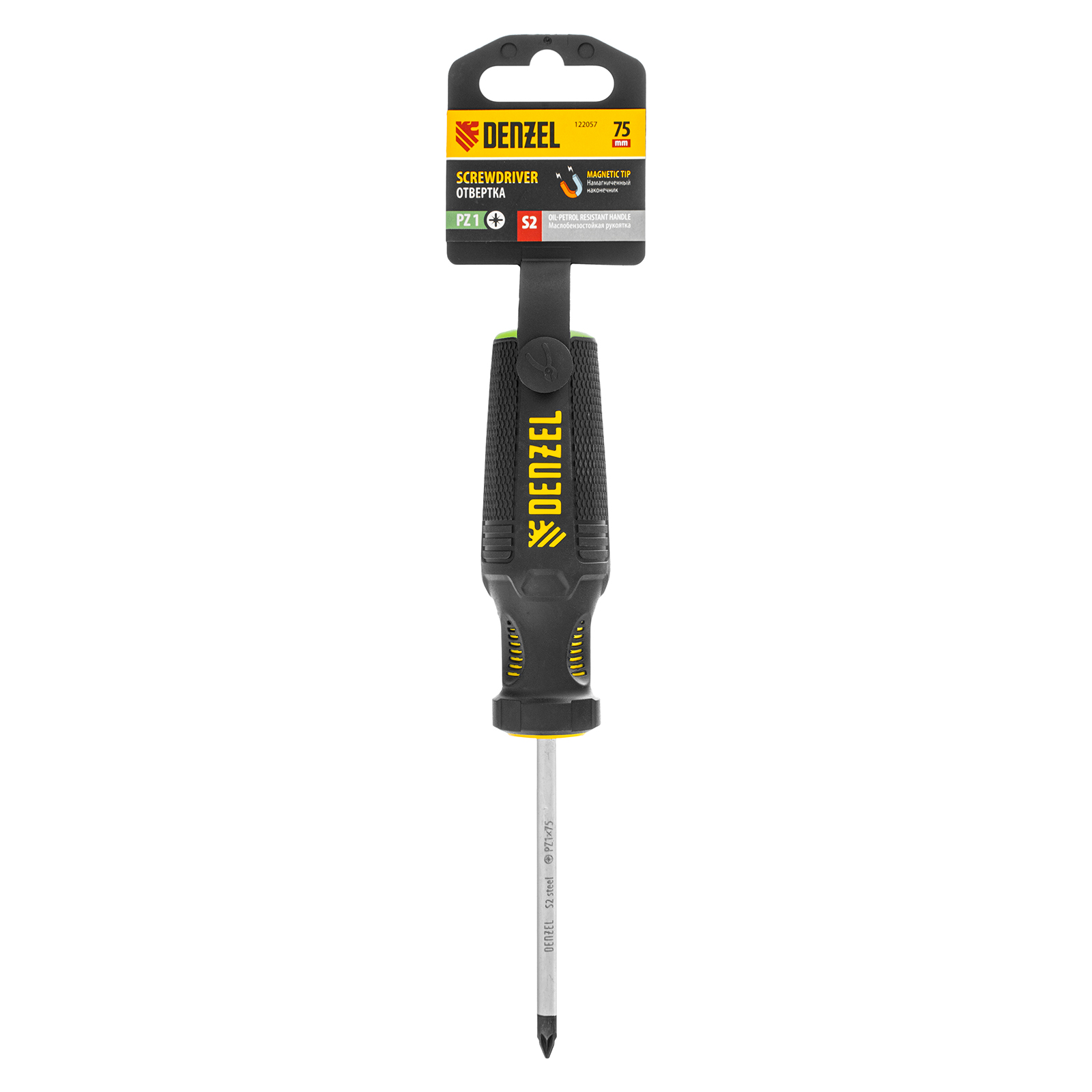 Отвертка, PZ1x75 мм, S2, 3к рукоятка Denzel в Казани