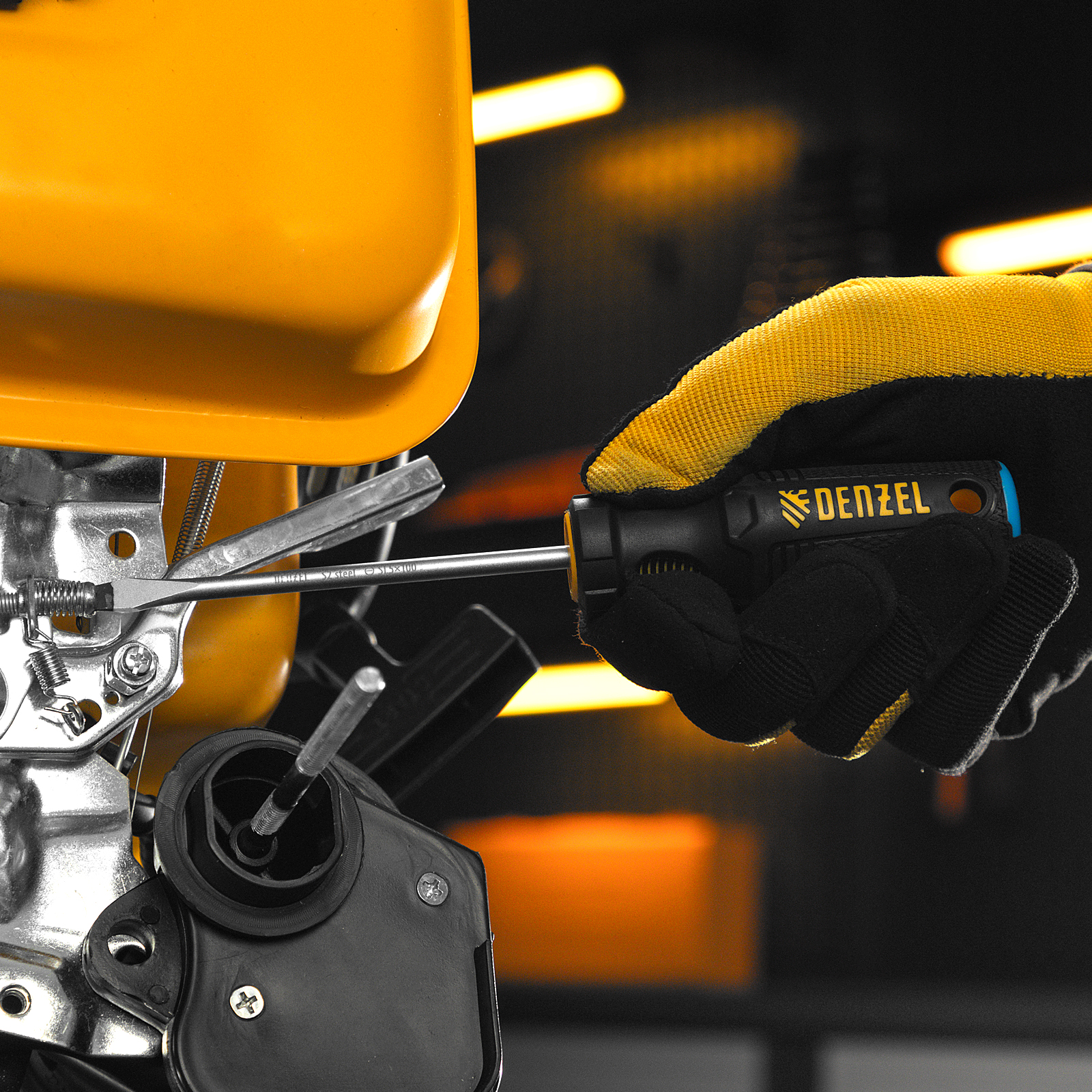 - Работа в сложных условиях — трехкомпонентная рукоятка обладает масло- и бензостойкостью.
