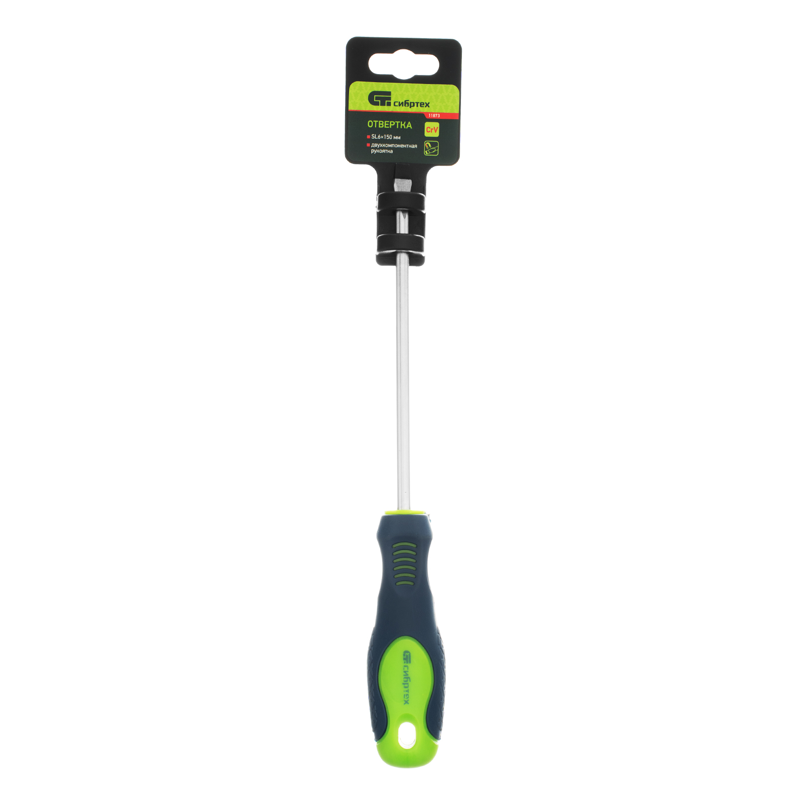 Отвертка, SL6 х 150 мм, CrV, двухкомпонентная рукоятка Сибртех в Казани