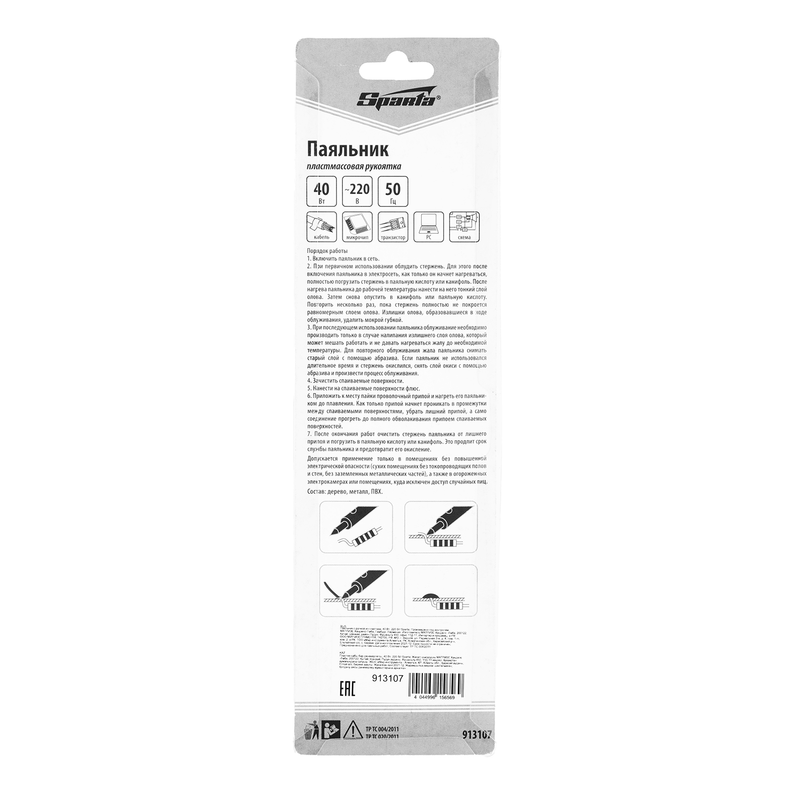 Паяльник с ручкой из пластика, 40 Вт, 220 В Sparta в Казани