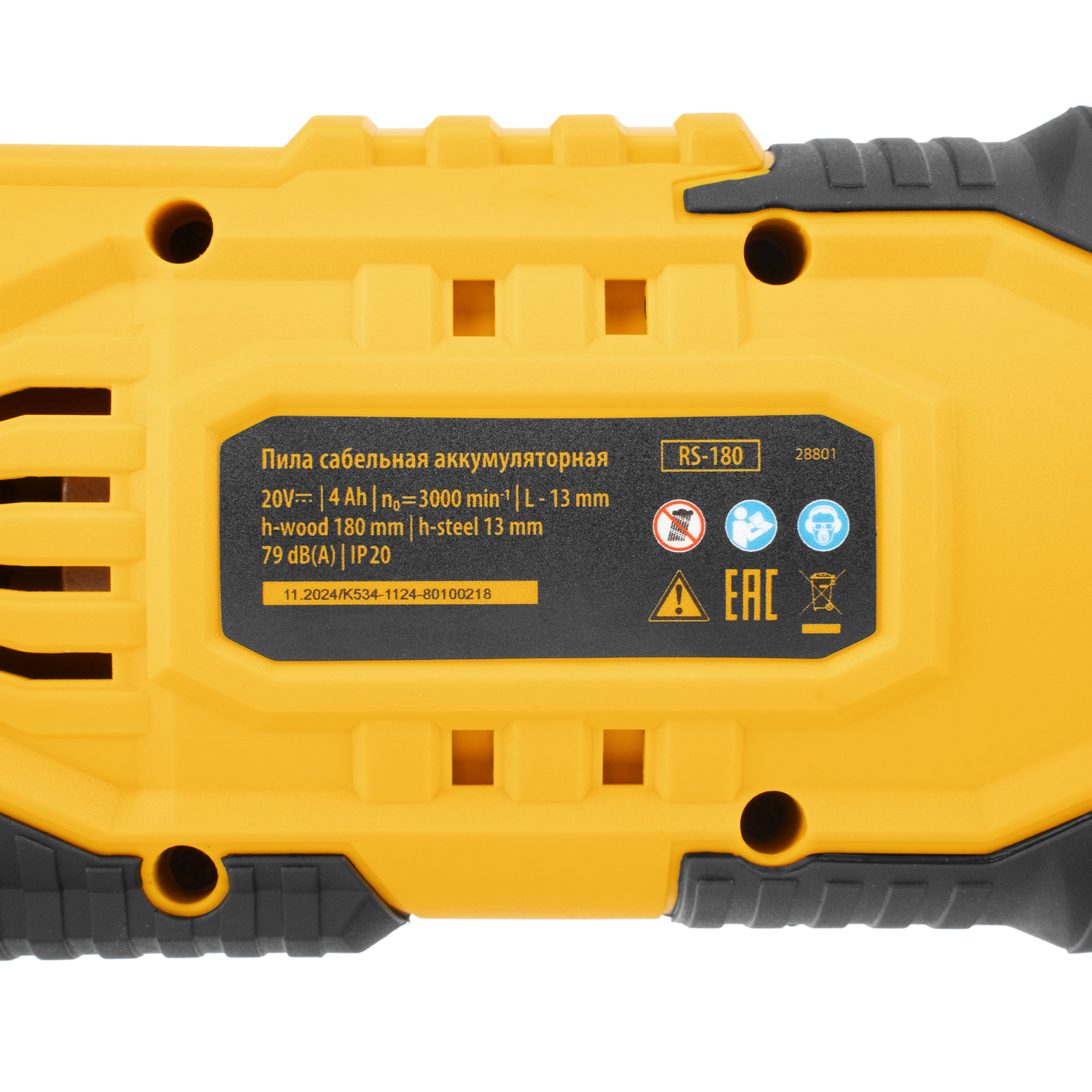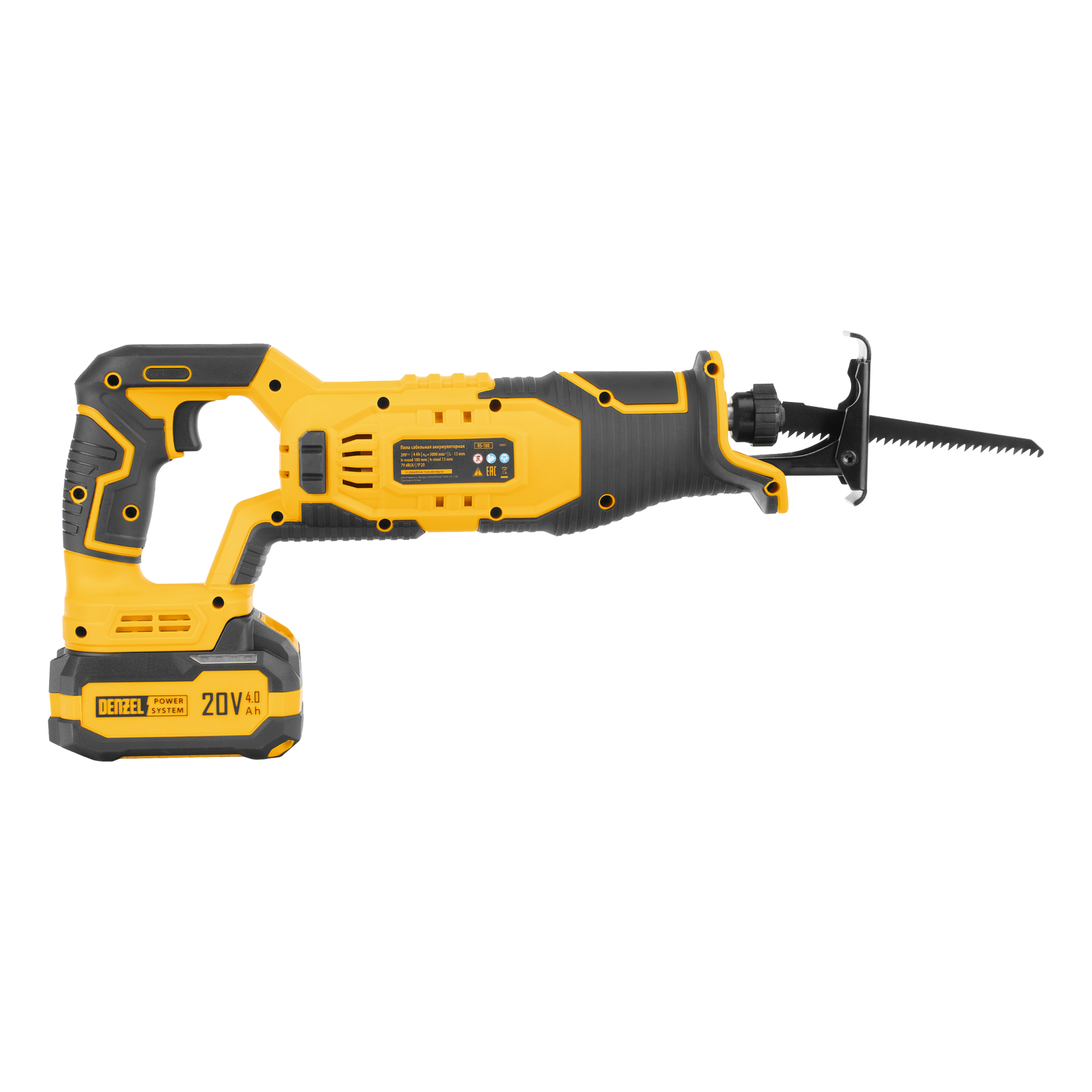 Пила сабельная аккумуляторная RS-180, Li-Ion, 20 В Denzel в Казани