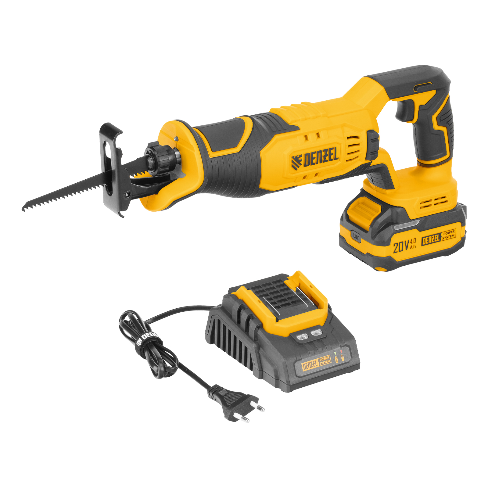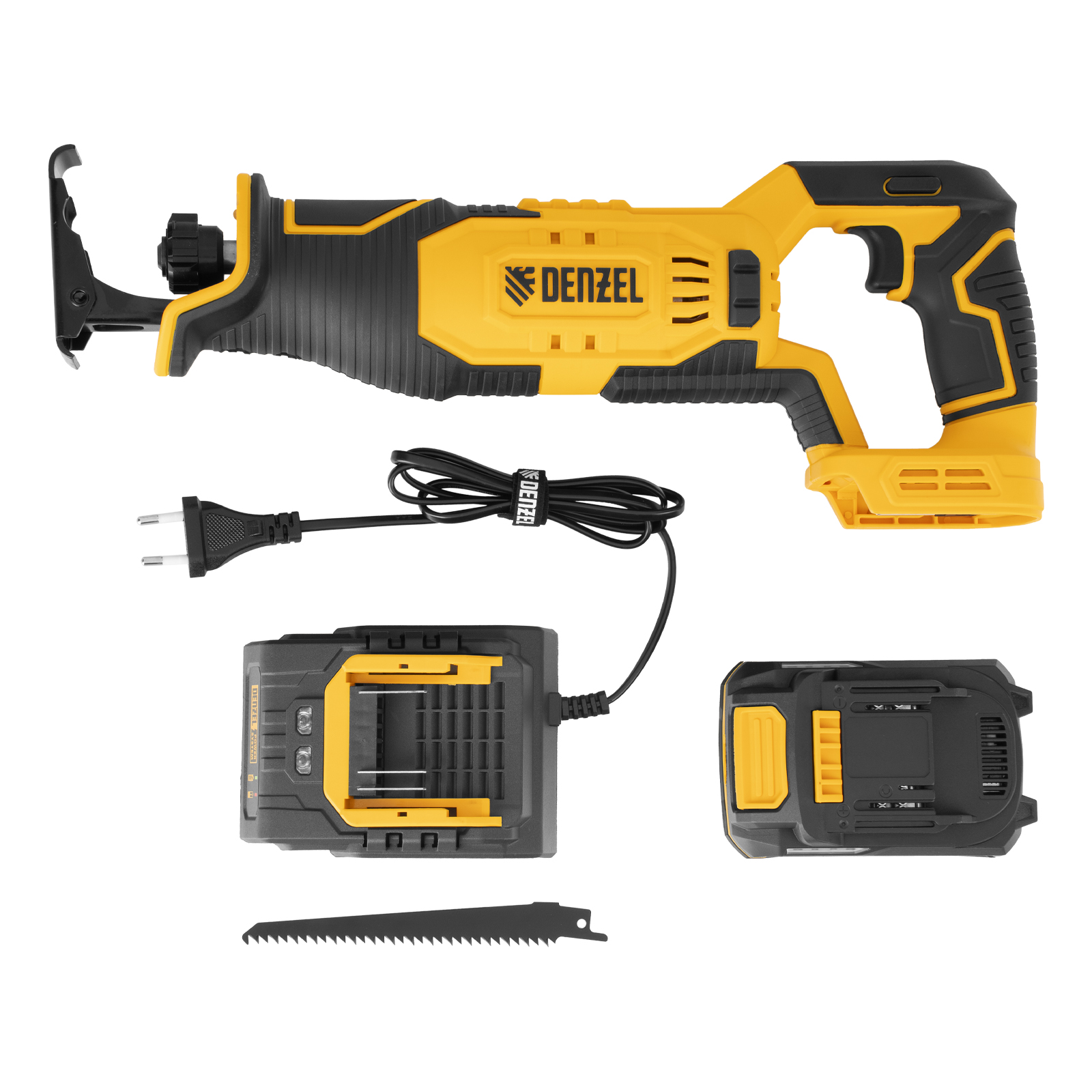 Пила сабельная аккумуляторная - 1 штЛезвие сабельной пилы - 1 штАккумуляторная батарея Denzel Power System - 1 штЗарядное устройство - 1 штПолотно пильное по дереву - 1 штПолотно пильное по металлу - 1 штРуководство по эксплуатации с гарантийным талоном - 1 шт |