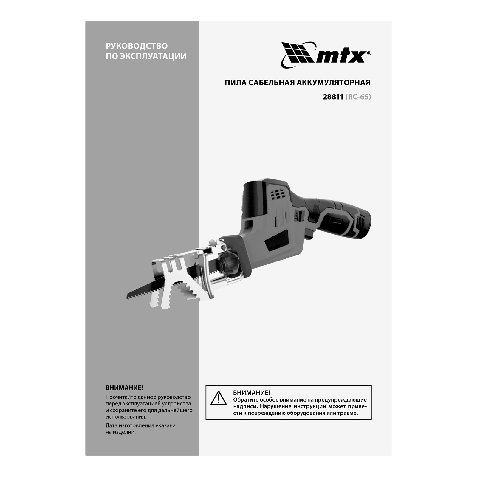 Пила сабельная аккумуляторная RС-65, Li-Ion, 12 В MTX в Казани