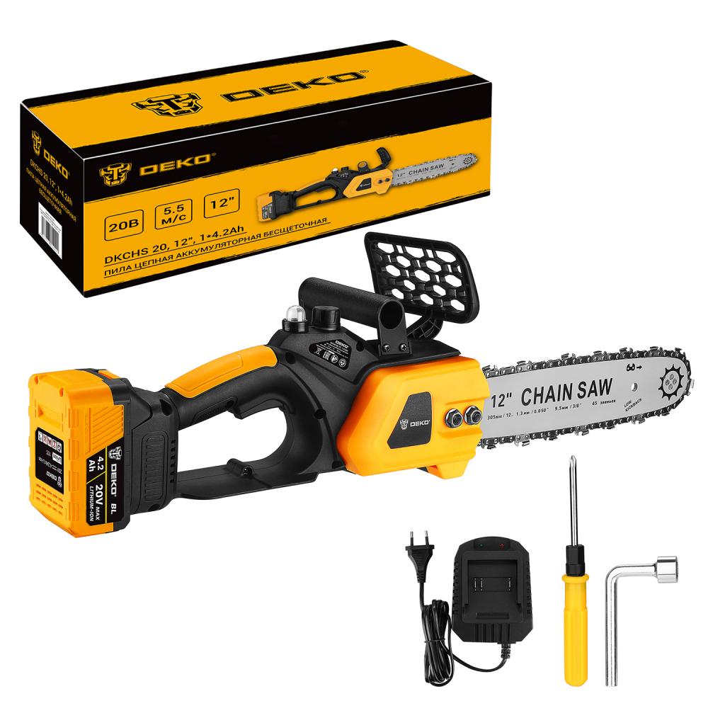 • Пила цепная аккумуляторная бесщеточная DEKO DKCHS 20, 10", 20В, 1x4.0Ач, з/у купить в Москве с доставкой по всей России | ProtosMarket.ru