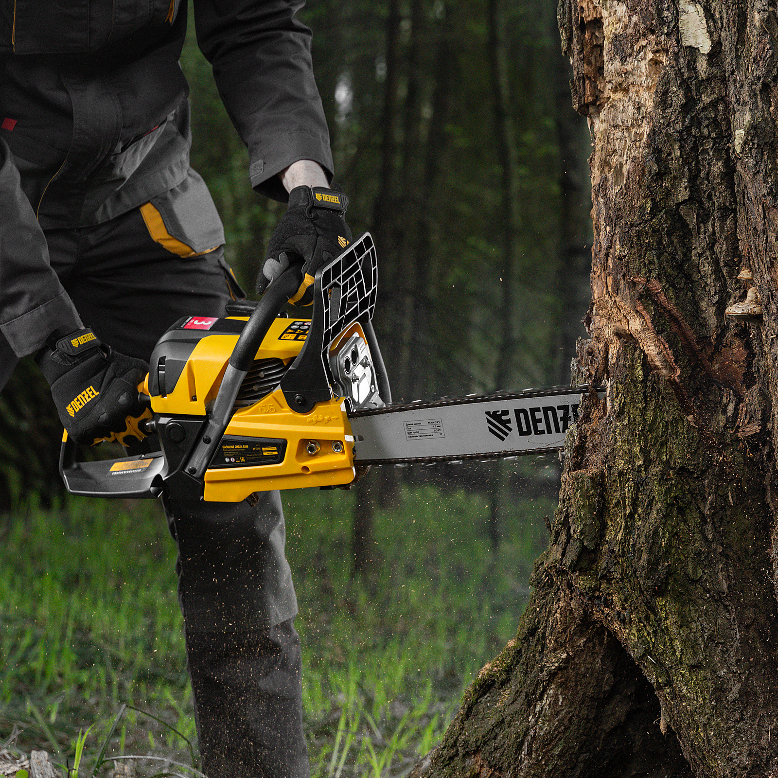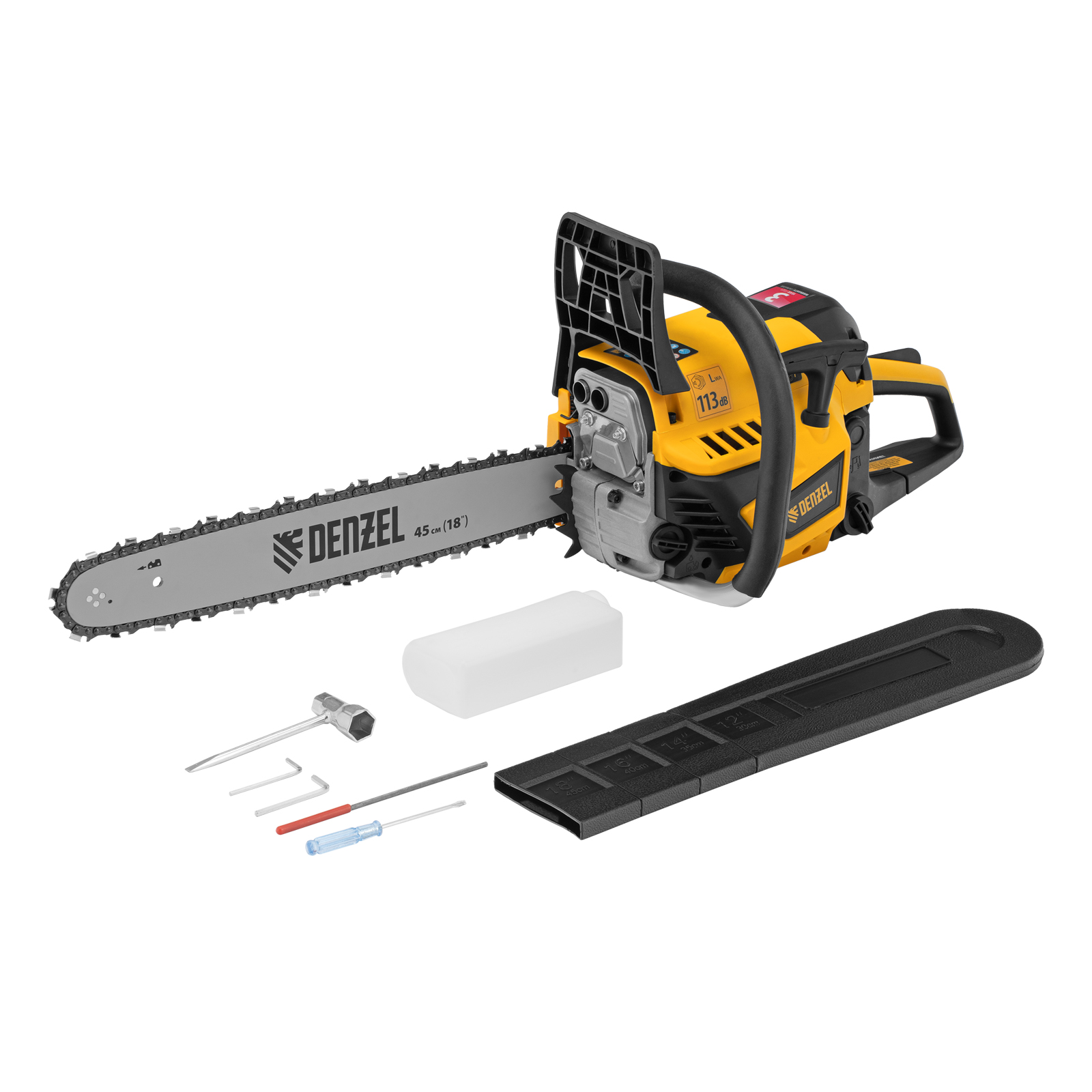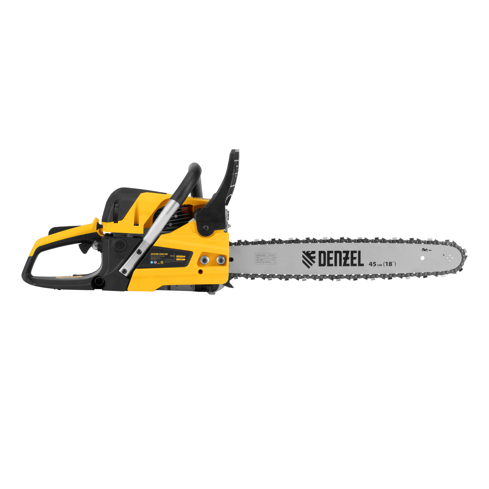 Пила цепная бензиновая DS-5218, шина 45 см, 52 см3, 3 л.с, шаг 0,325, паз 1,5 мм, 72 звена Denzel