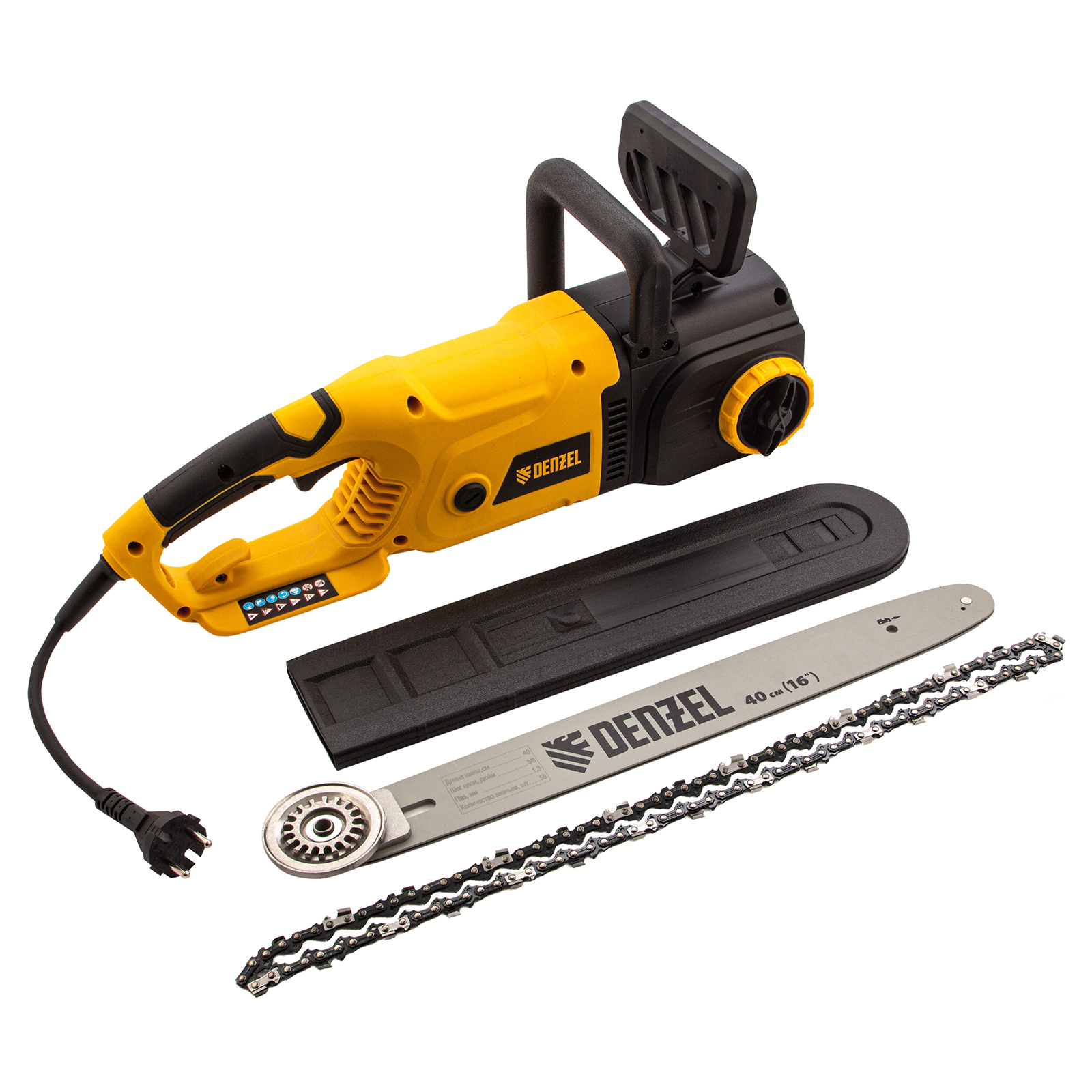 Пила цепная электрическая EDS-1800P, 1.8 кВт,поперечная, шина 40 см, шаг 3/8, паз 1.3 мм, 57 звеньев Denzel