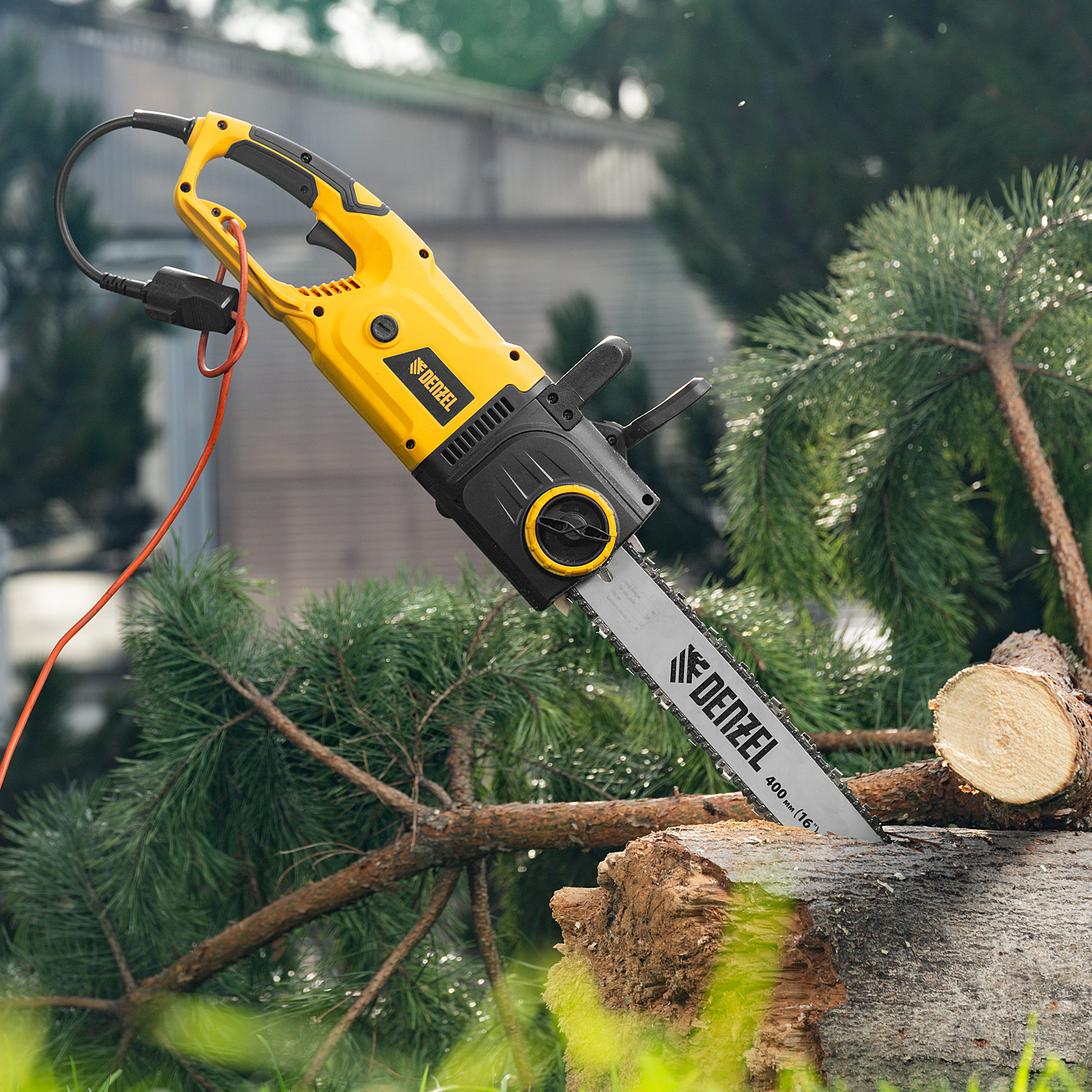 Пила цепная электрическая EDS-2200P, 2.2 кВт,поперечная, шина 45 см, шаг 3/8, паз 1.3 мм, 63 звена Denzel