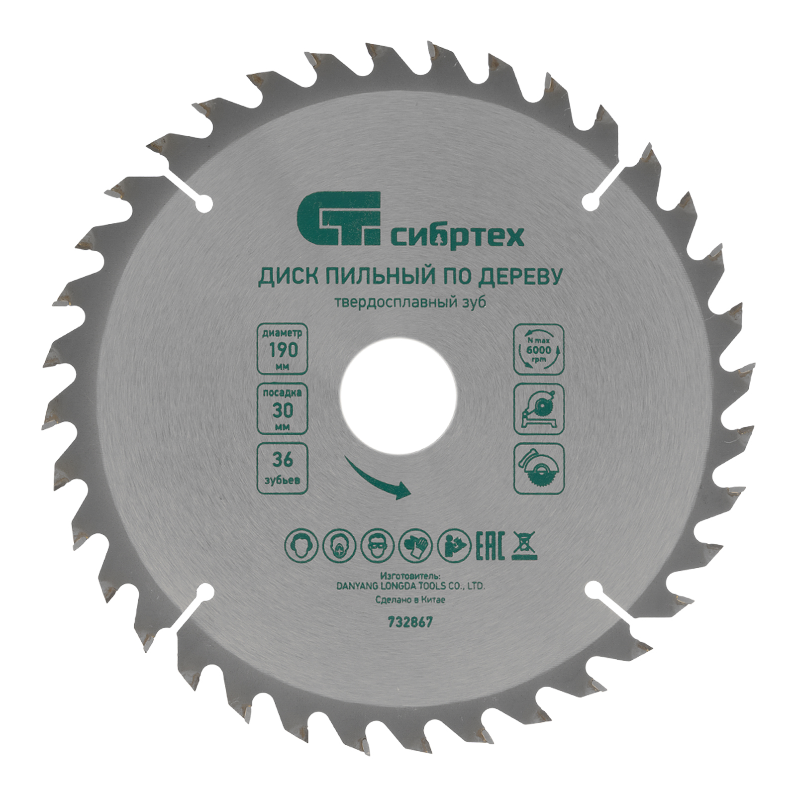Пильный диск по дереву, 190 х 30 мм, 36 зубьев Сибртех
