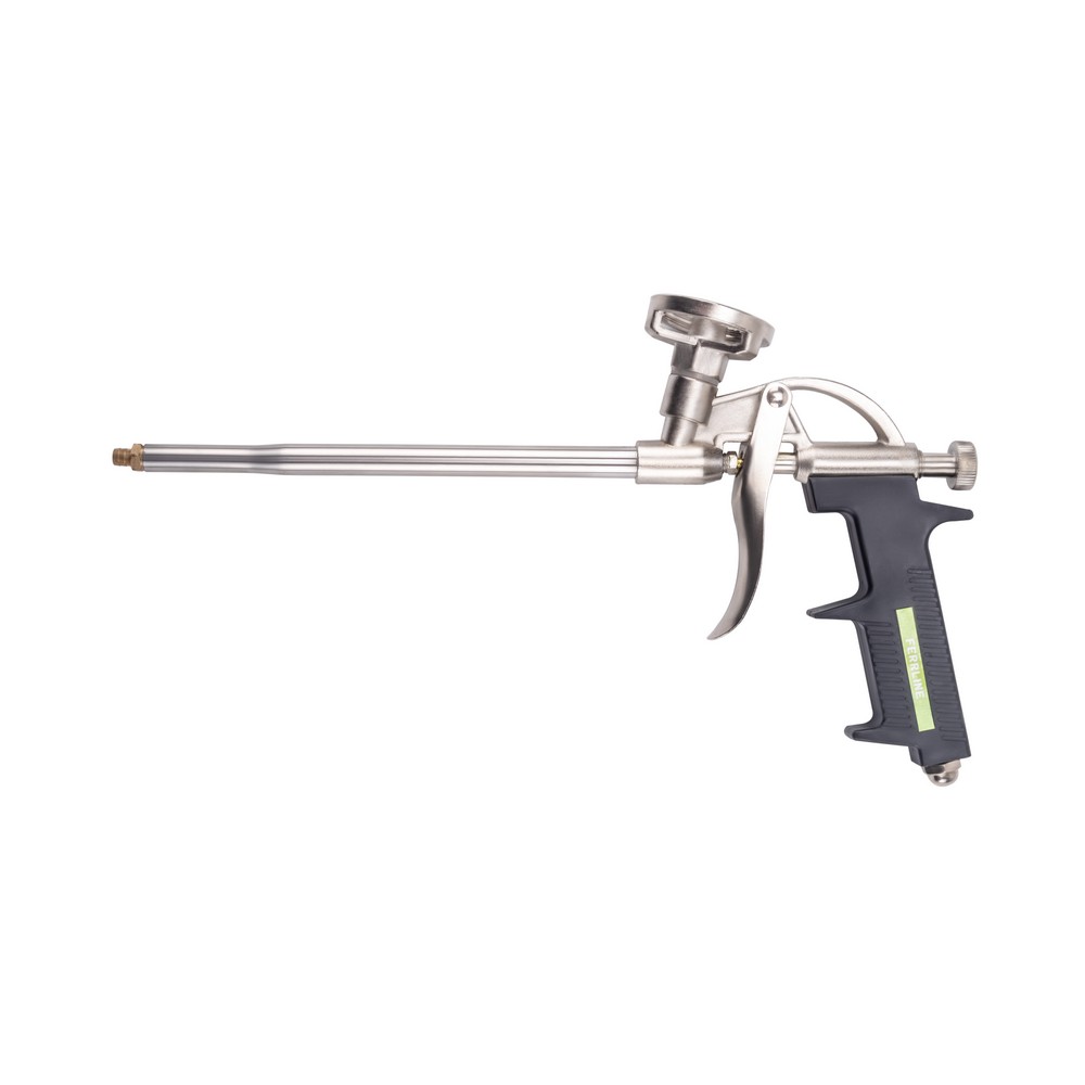 Пистолет для монтажной пены FerrLine FM-5. Предназначен для проведения работ с профессиональной монтажной пеной при установке дверей, окон, различных строительных конструкций. Прочная и крепкая металлическая конструкция гарантирует эксплуатационную надежность и долговечность, а удобная и эргономичная рукоятка снижает усилие и нагрузку при нажатии в ходе выполнения работы. Винт регулировки подачи пены обеспечивает более точное и аккуратное нанесение.