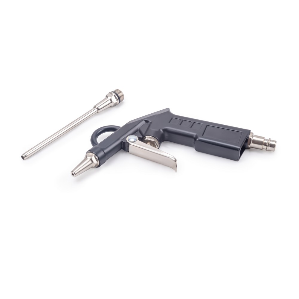 Продувочный пистолет применяется в быту, в автомастерских, на производстве и в строительстве. Предназначен для очистки и подготовки поверхностей для эксплуатации, для продувки сжатым воздухом отверстий, поверхностей, а также труднодоступных мест. Сжатым воздухом из продувочных пистолетов удобно продувать засоры в трубах, канализационных и отопительных системах. Подключается к пневмосети или компрессору через быстросъемное соединение Rapid M. Имеет легкий литой корпус из прочного алюминиевого сплава. Для удобства выдувания из труднодоступных мест комплектуется дополнительной 10 см. насадкой.