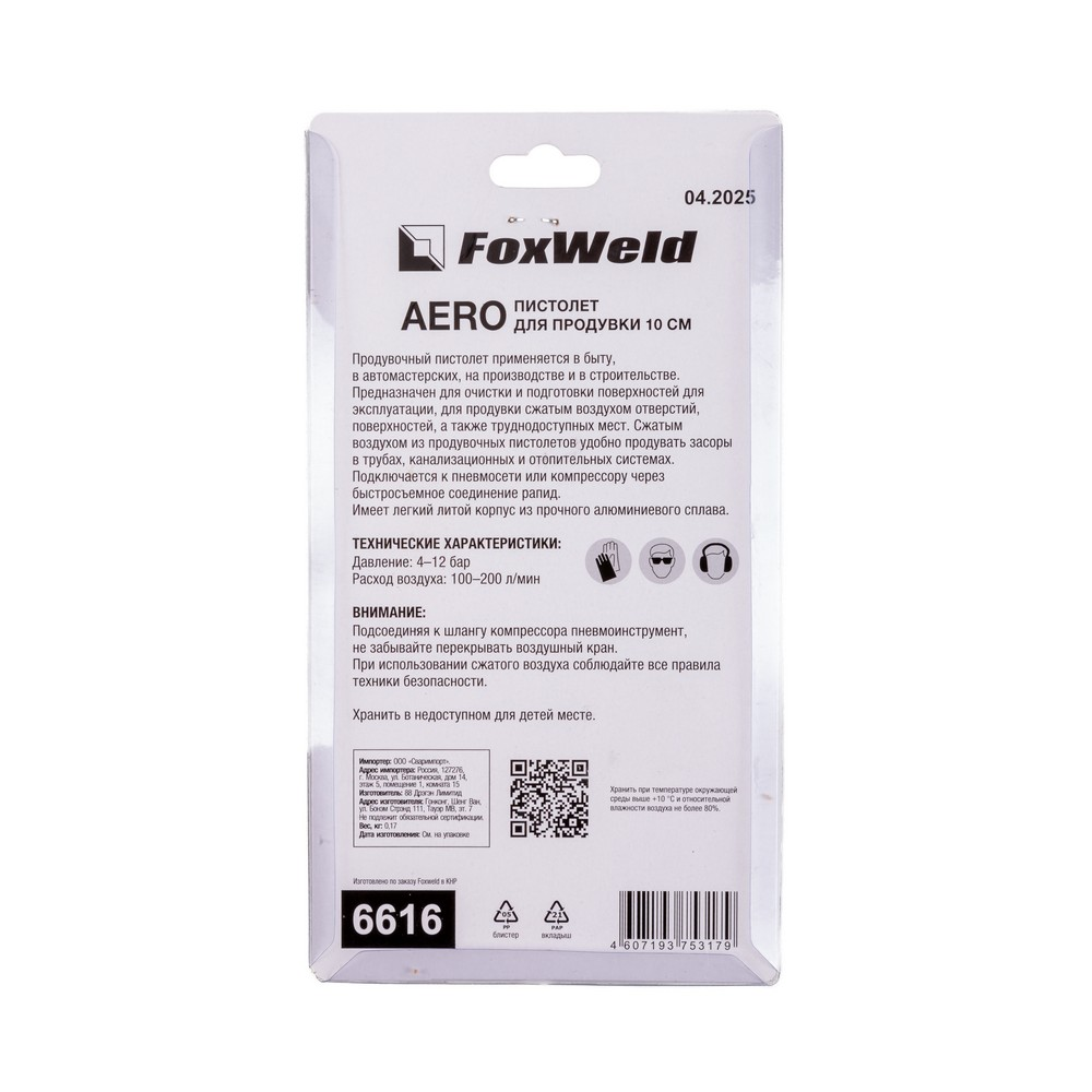 Отверстие для хранения пистолета для продувки Foxweld AERO в подвешенном состоянии;