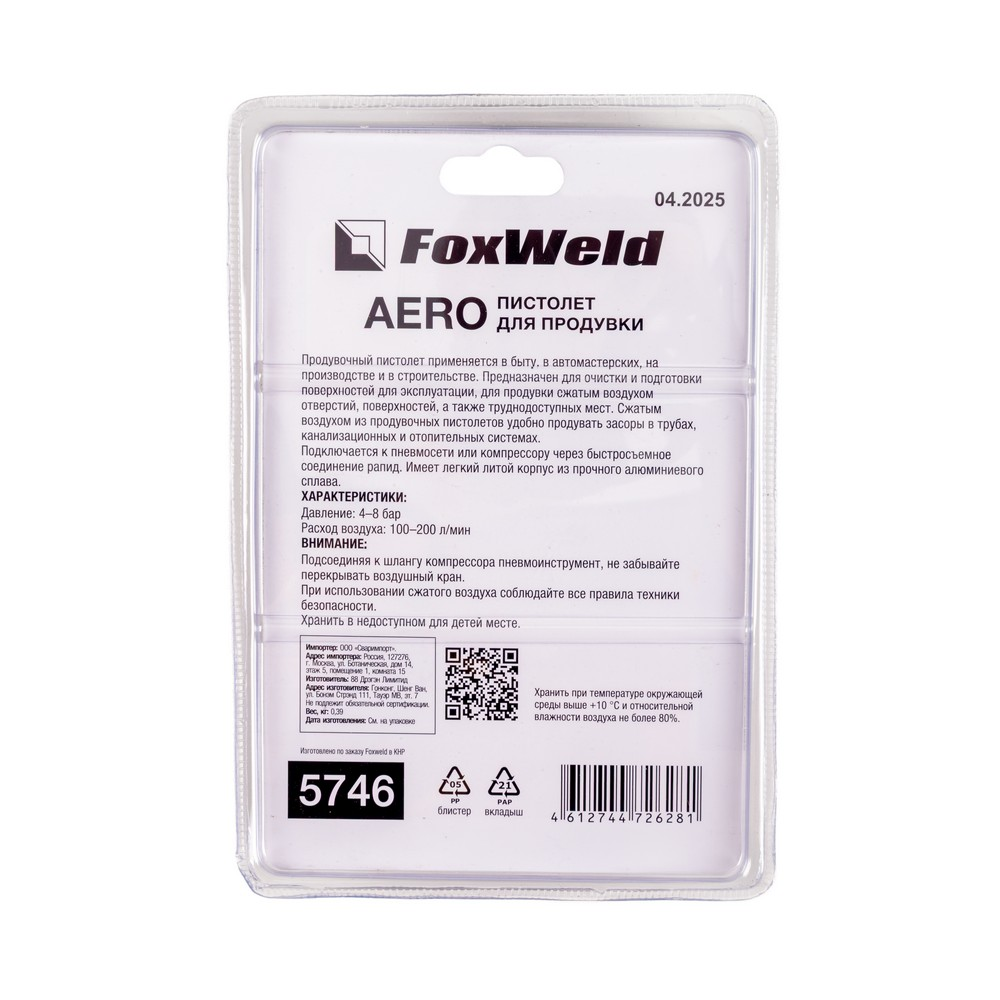 Отверстие для хранения пистолета для продувки Foxweld AERO в подвешенном состоянии;