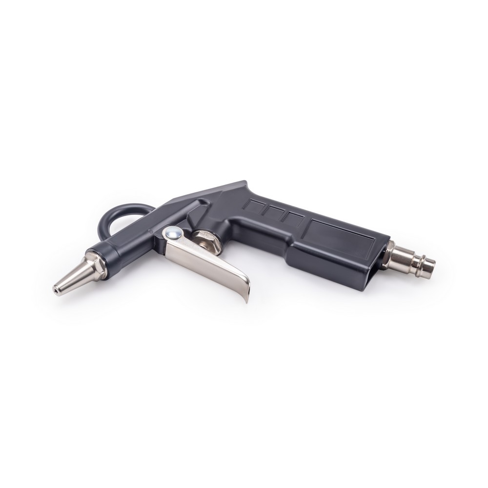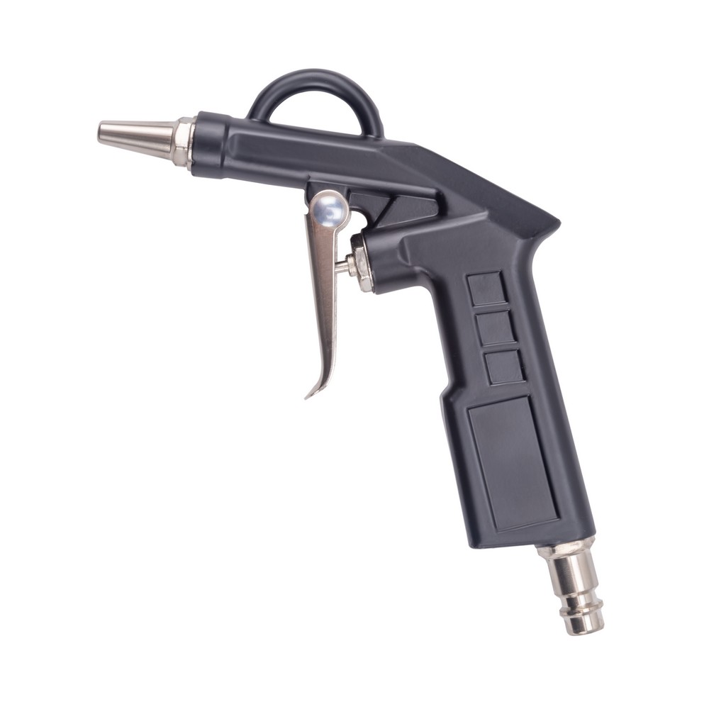 Продувочный пистолет применяется как в быту, так и в коммерческих автомастерских, сервисах, на производстве и в строительстве. Предназначен для очистки оборудования, для продувки сжатым воздухом различных отверстий от загрязнений и пыли, сдувания мусора с поверхностей, удаления влаги и конденсата, в т.ч. из труднодоступных мест. Сжатым воздухом из продувочных пистолетов удобно продувать засоры в трубах, канализационных и отопительных системах. Пистолет подключается к пневмосети или компрессору через быстросъемное соединение Rapid M "папа". Имеет легкий литой корпус из прочного алюминиевого сплава и практичную петлю для вертикального хранения в подвешенном виде.