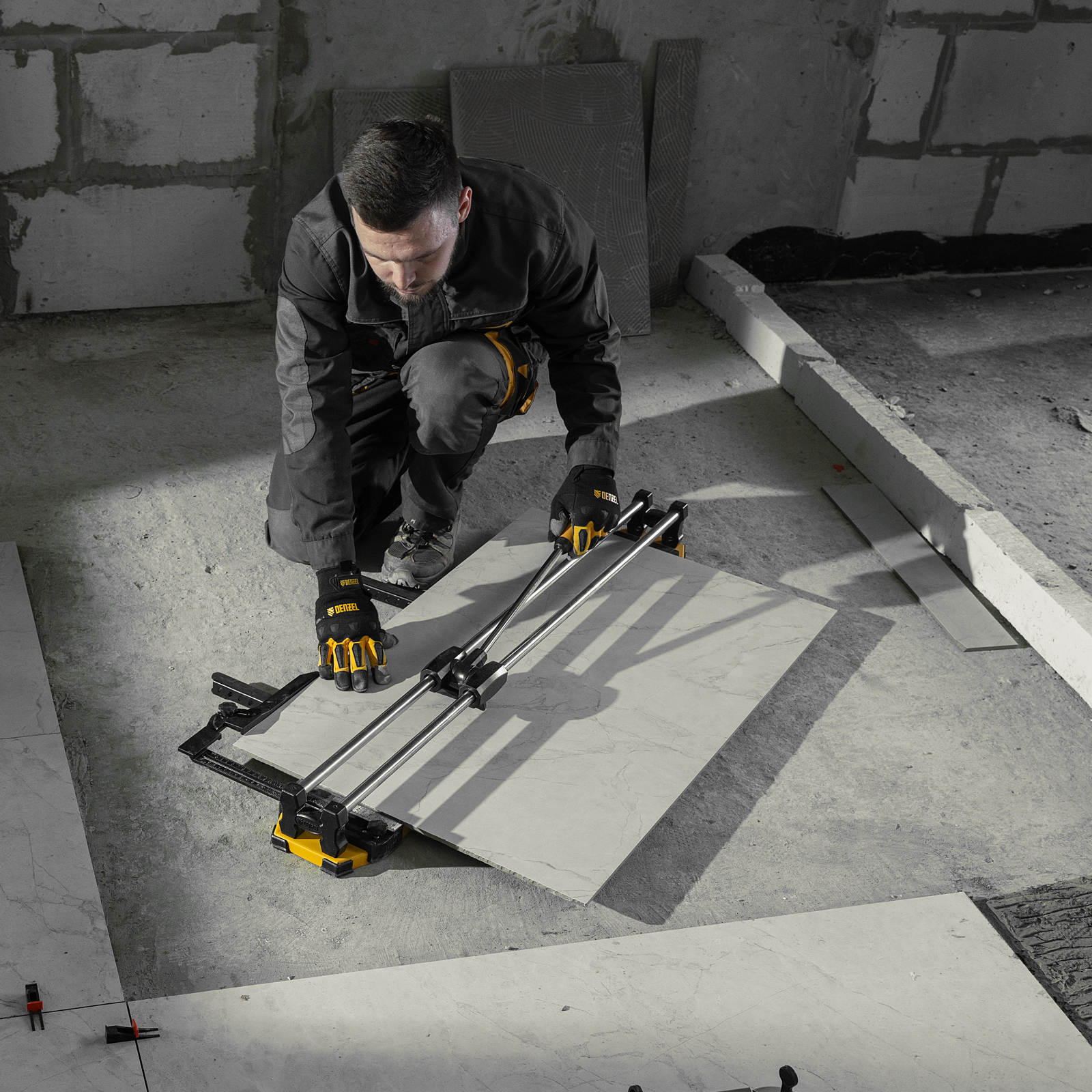 - Эргономичность — плитколом с магнитным держателем не создает помех во время резки.