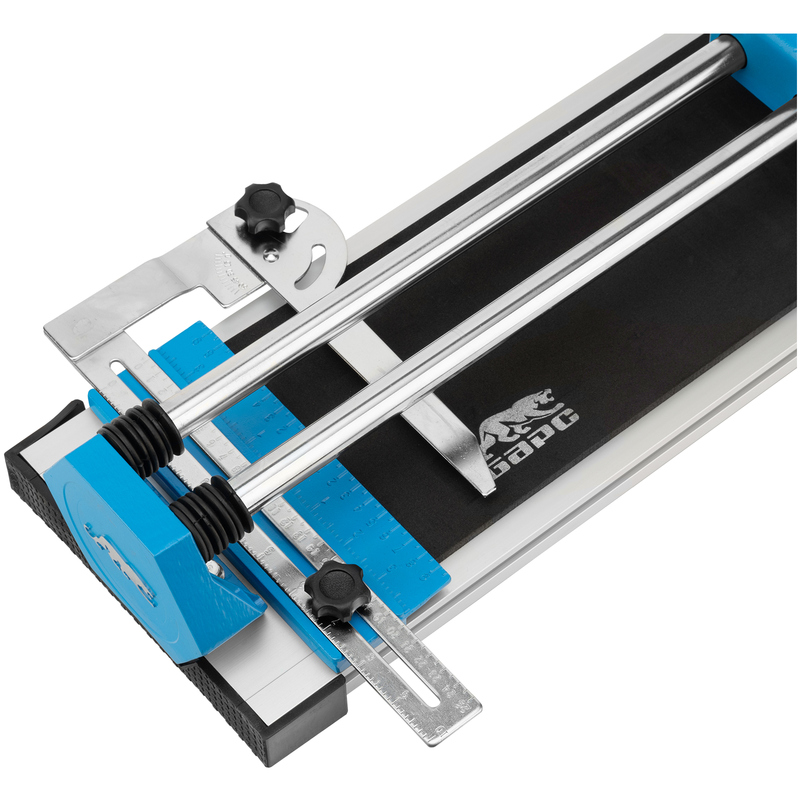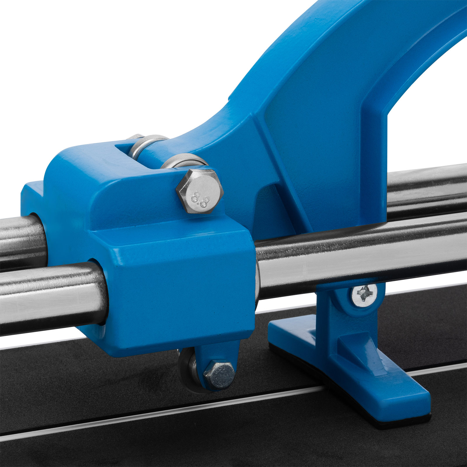 • Надежная фиксация плитки — цельнолитая станина из алюминиевого сплава обеспечивает устойчивость плиткореза, резиновые амортизаторы предотвращают удар каретки о стойку.