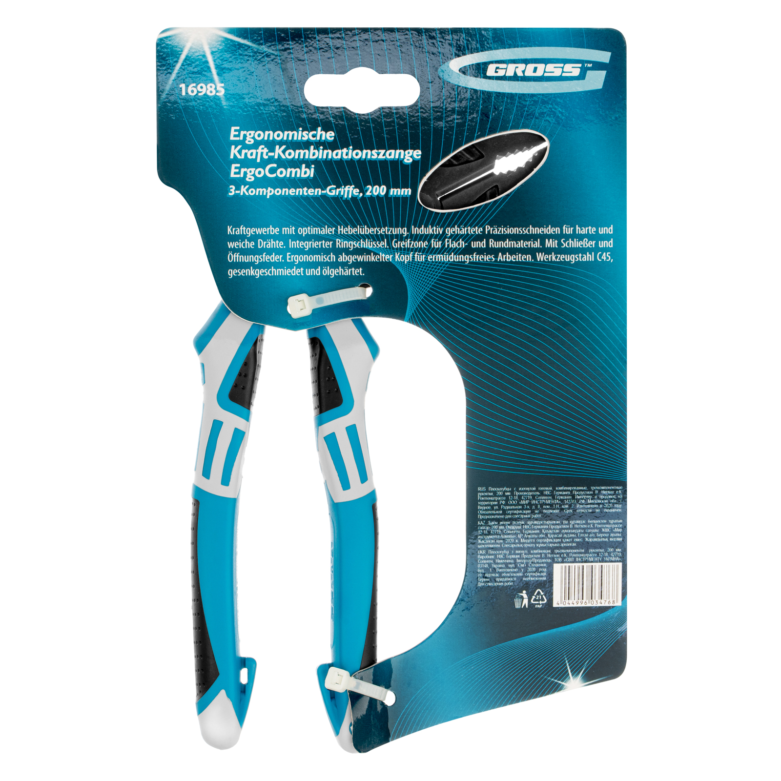 Плоскогубцы комбинированные с изогнутой головой, трехкомпонентные рукоятки, 200 мм Gross