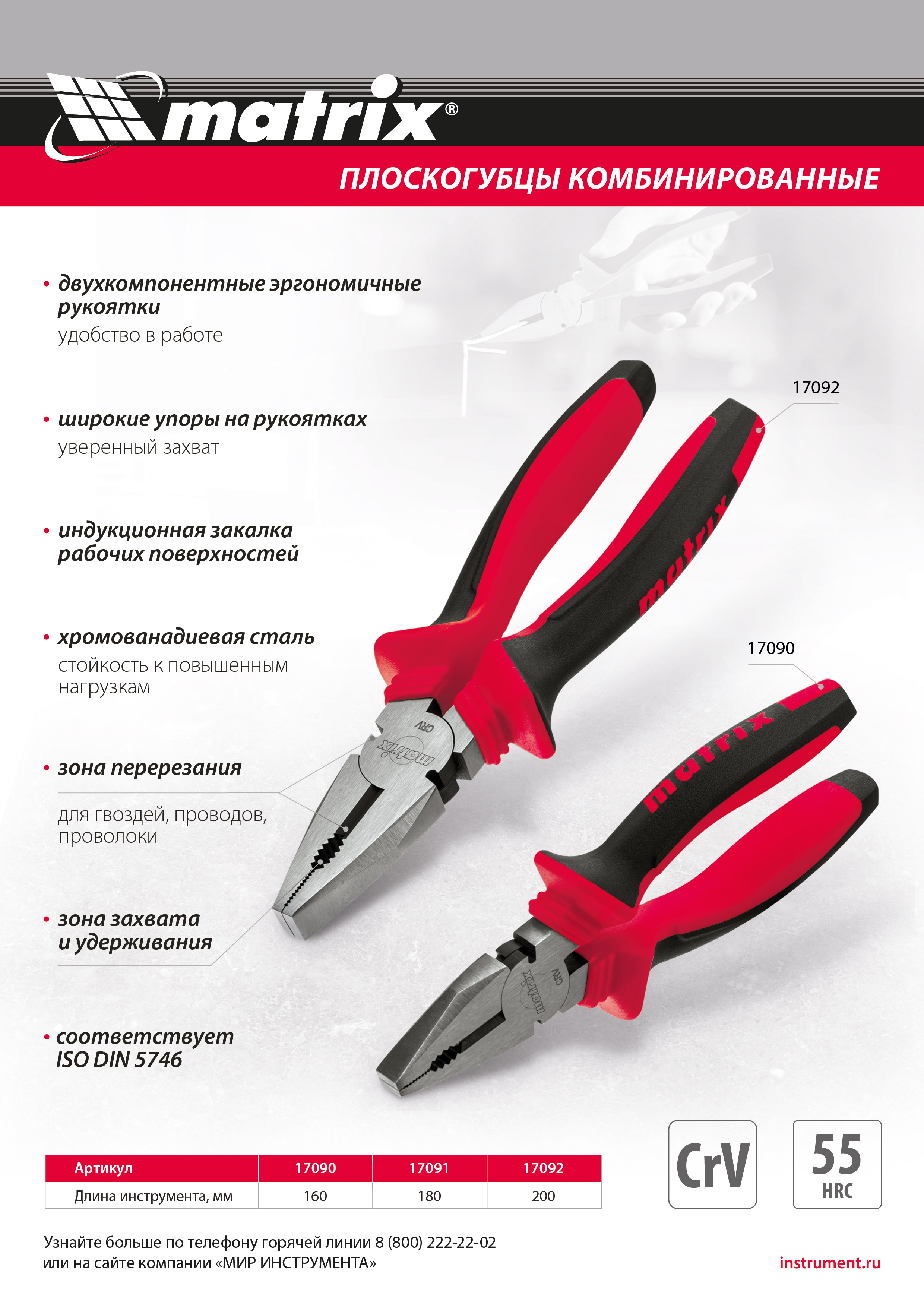 Плоскогубцы комбинированные, 180 мм, хром-ванадий, двухкомпонентные рукоятки Matrix