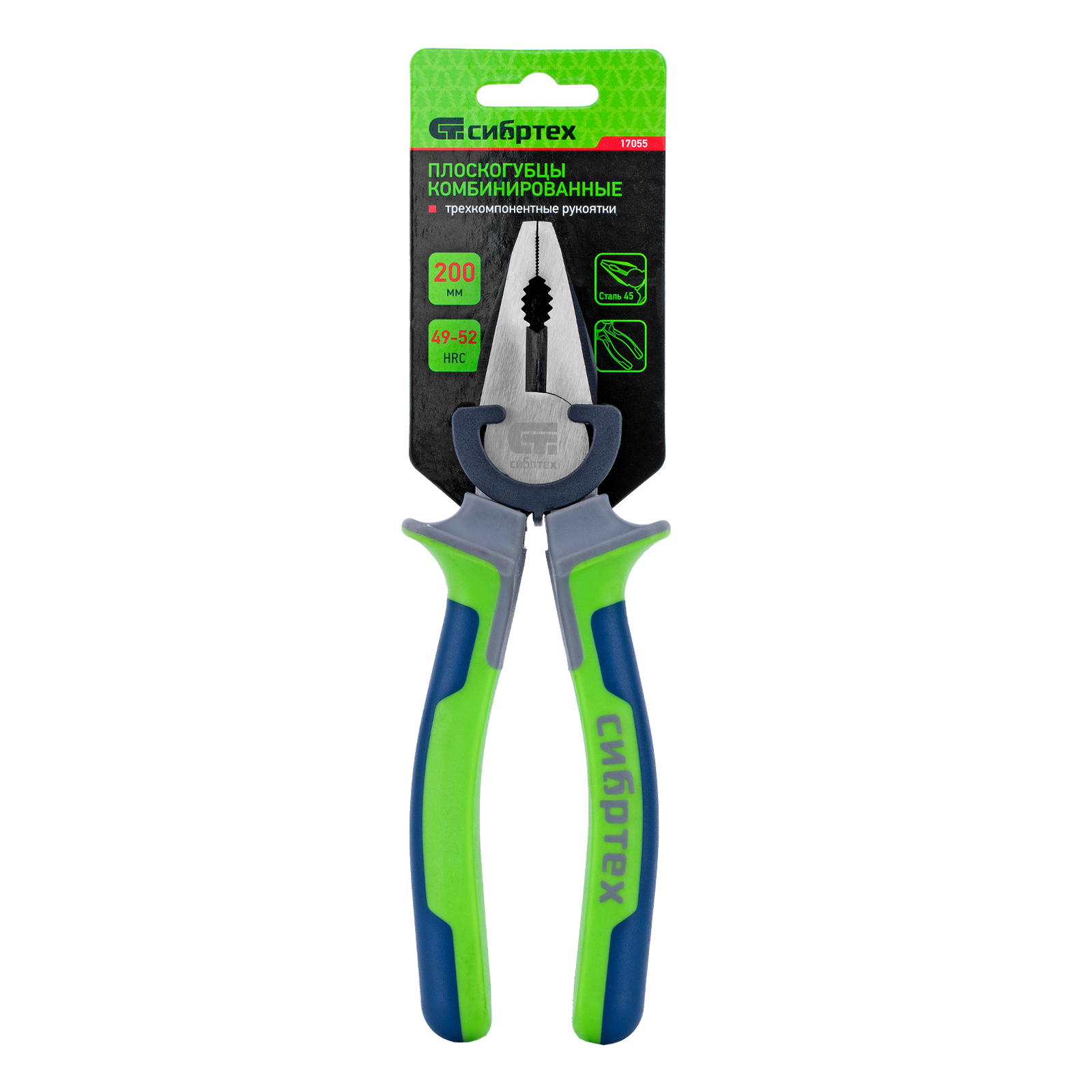 Плоскогубцы комбинированные, 200 мм, фосфатирование, трехкомпонентные рукоятки Сибртех