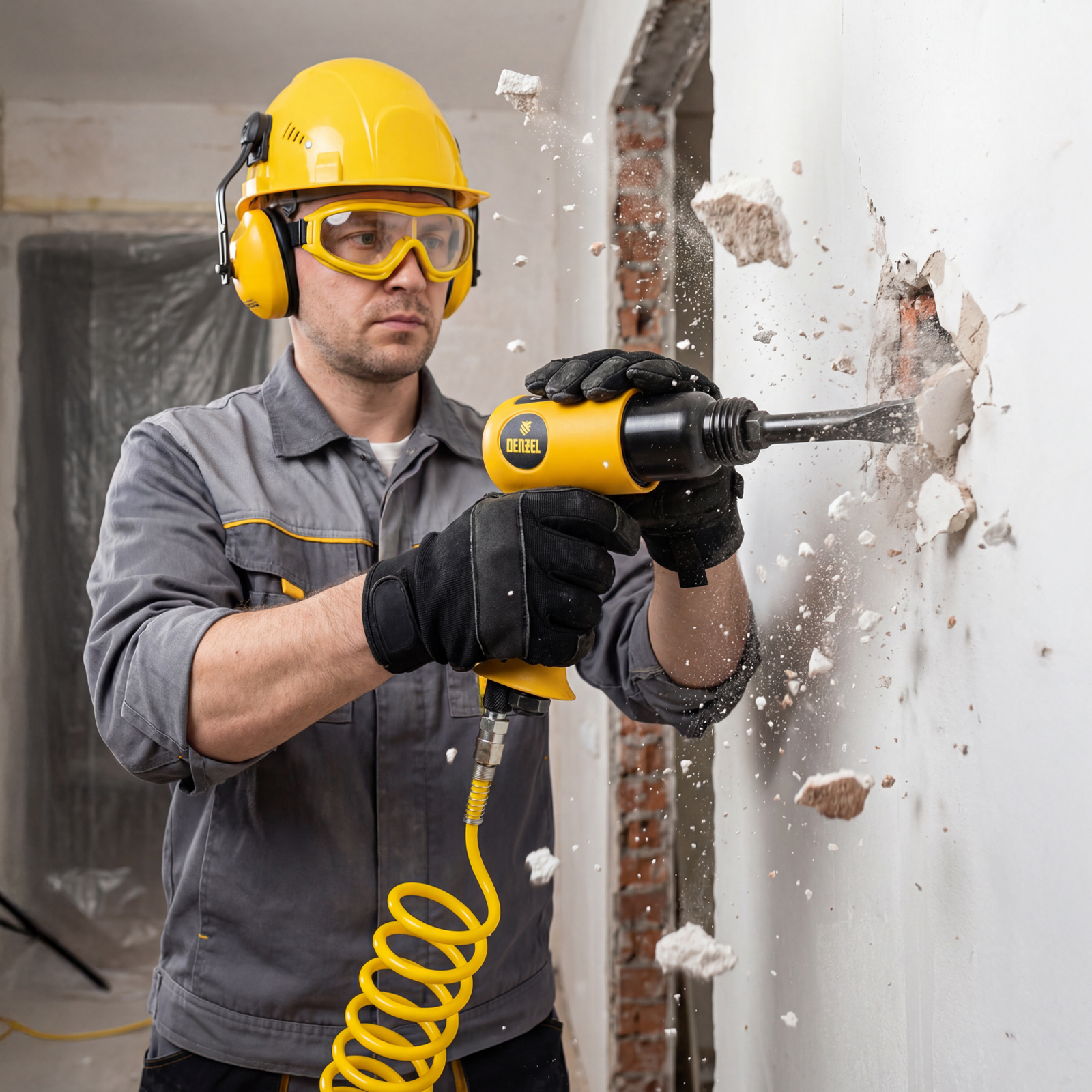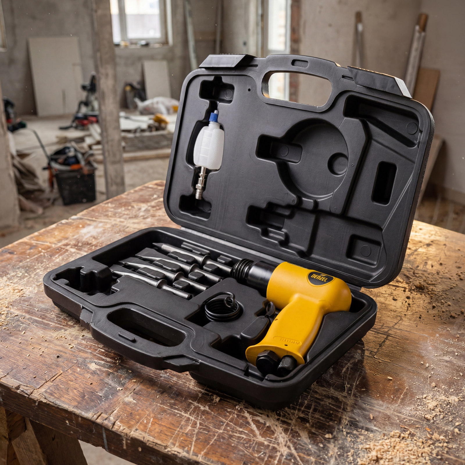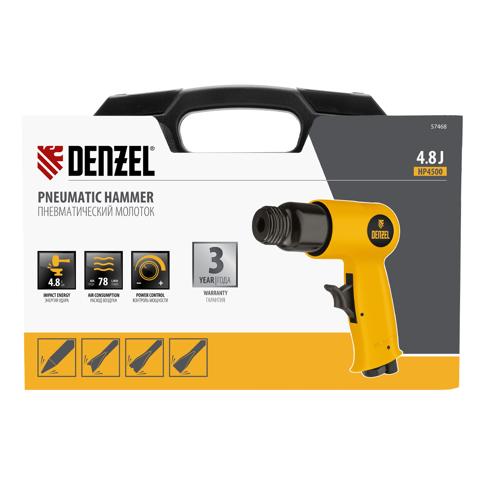 Пневматический молоток НР4500 + набор насадок, 113 л/мин, 4500 уд/мин Denzel в Казани