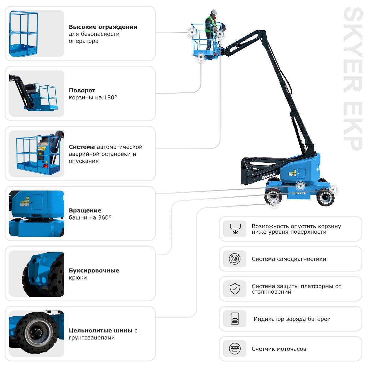 Коленчатый подъемник SKYER EKP1623 — дотянется везде!