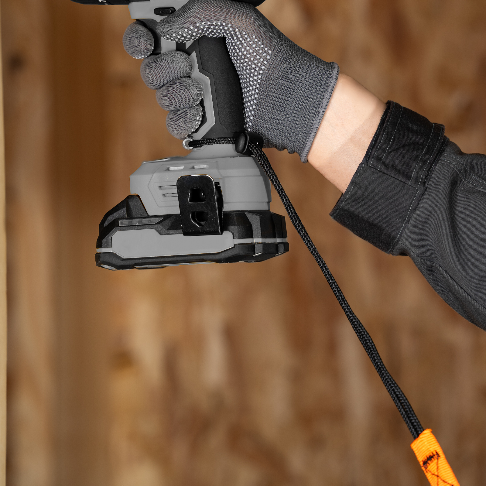 • Универсальность — шнур с зажимом позволяет прикрепить к подвесу инструмент, даже если у него нет специальной скобы.