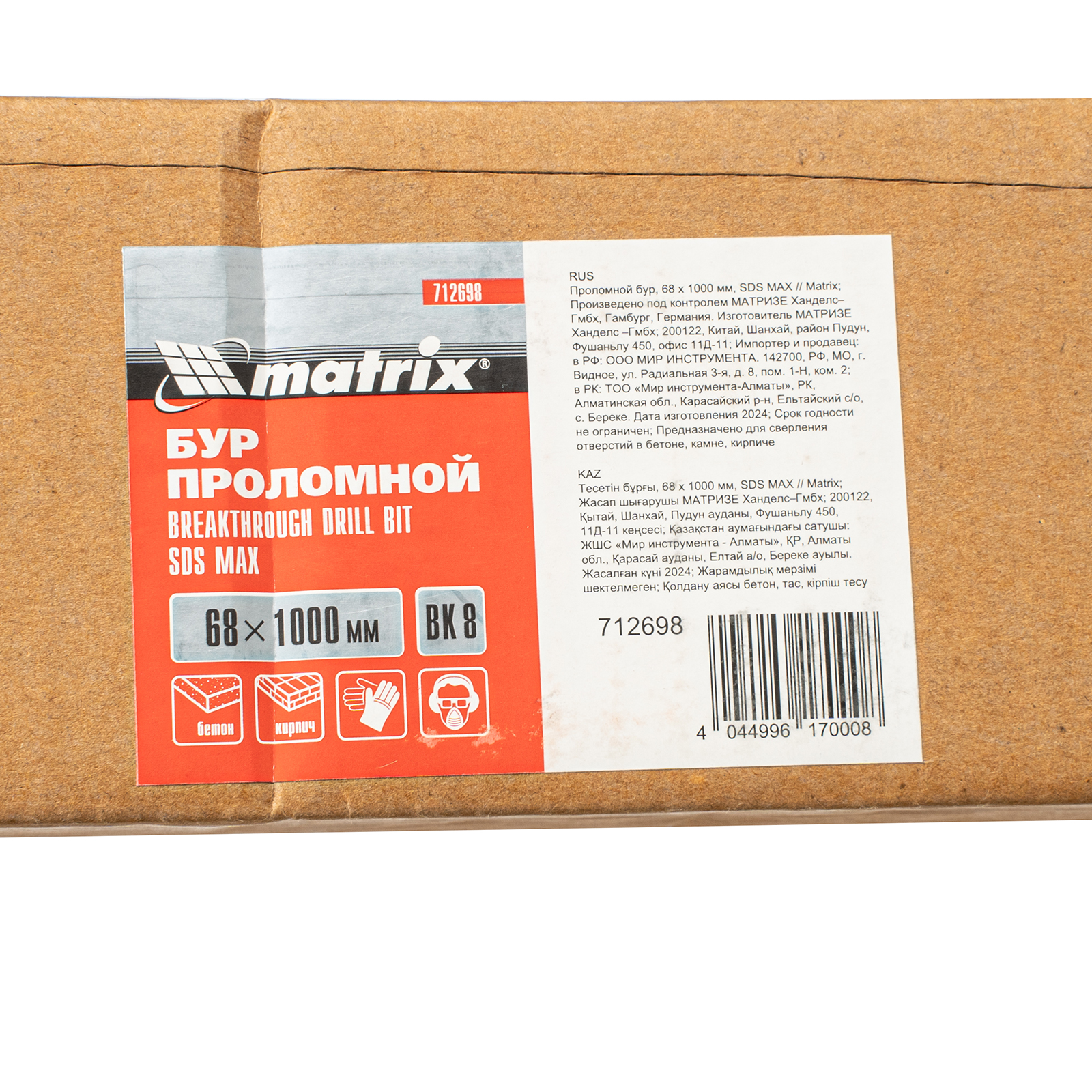 Проломной бур Matrix 712698 с хвостовиком SDS MAX позволяет получать сквозные отверстия диаметром 6,8 см и длиной 100 см в стенах из кирпича и бетона, полах, перекрытиях. Применяется совместно с высокомощными перфораторами SDS Max. Оптимален для прокладки газо- и водопровода, электрических коммуникаций, магистралей кондиционеров.