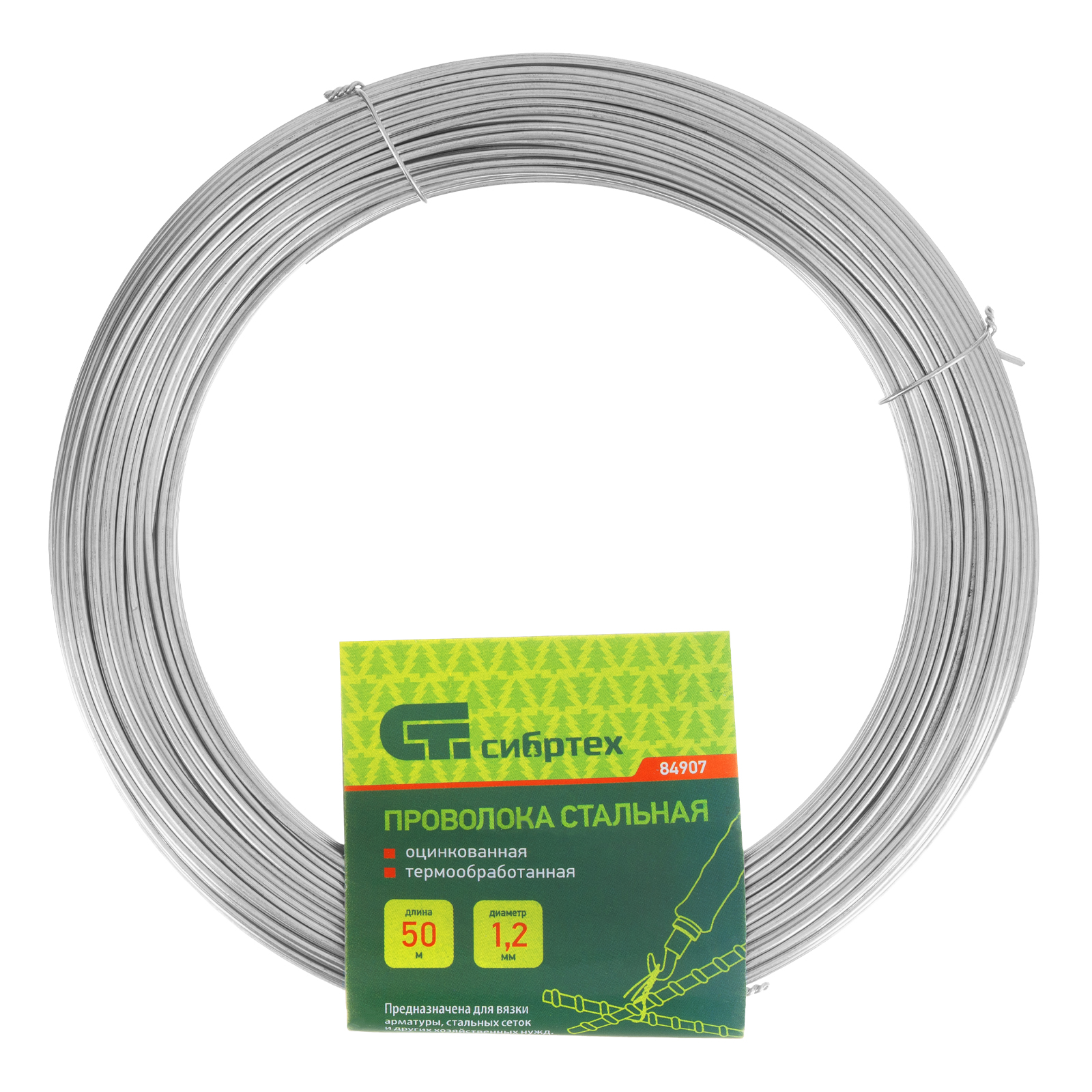 Проволока стальная 50 м, оцинкованная, термообработанная 1.2 мм Сибртех