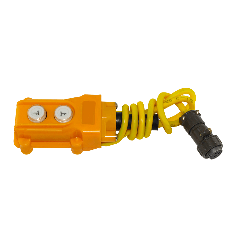 Пульт управления выносной двухкнопочный ДУ, поставляется в сборе с кабелем. Позволяет рабочему передвигаться по платформе и одновременно управлять движением люльки. Для подключения к щиту управления используется штыревой разъём.