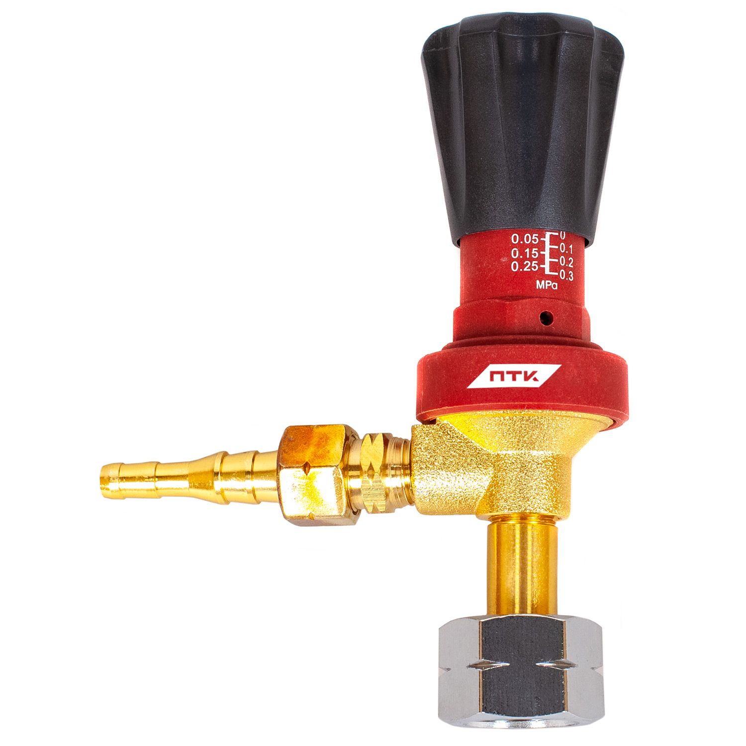 Редуктор без манометра. Шкала регулировки давления нанесена на корпус пружины, где точным указателем выставляемого давления является торец задающего винта. Корпус редуктора изготовлен из алюминия. Редуктор надежен в работе и обеспечивает высокую точность регулировки, эффективность подачи и экономичность используемого газа.