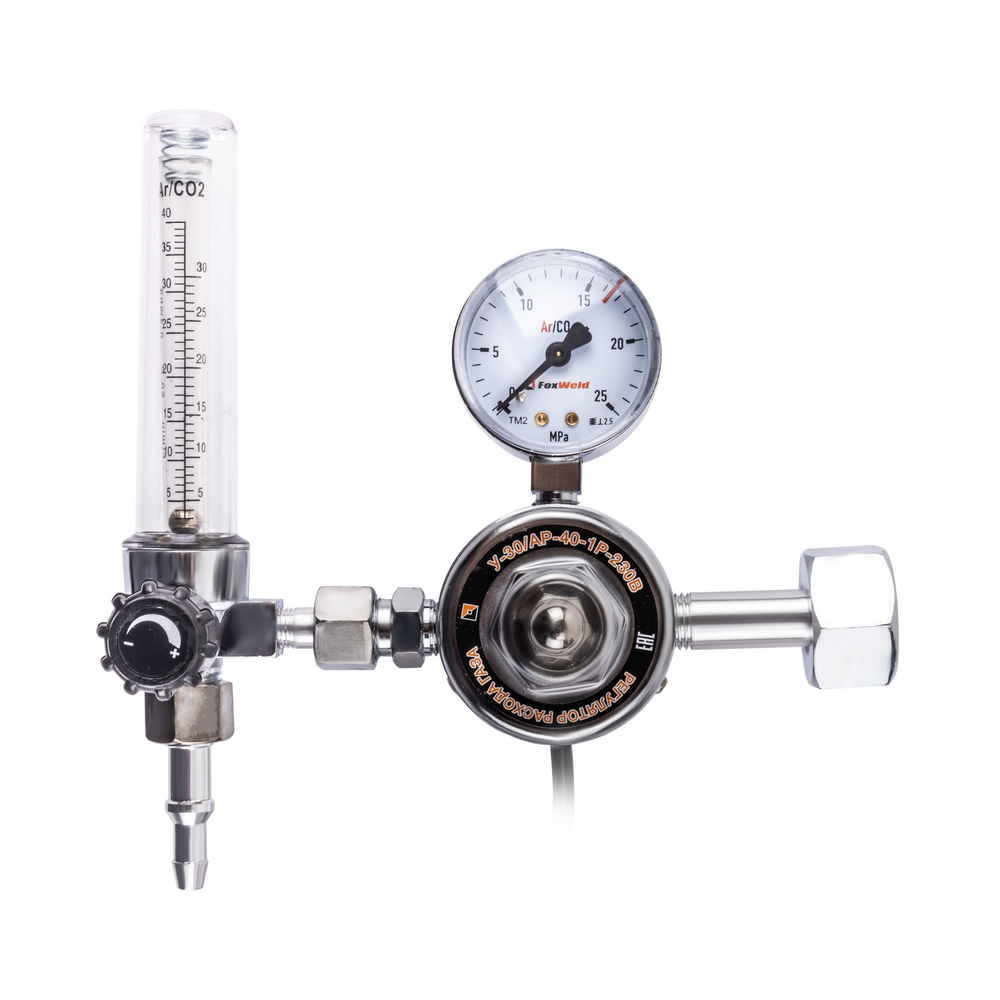 Регулятор расхода газа У-30/АР-40-1P-230В с подогревателем на 230 Вольт используется в работе с газосварочным оборудованием. Регулятор понижает давление при выходе из баллона и автоматически поддерживает заданный уровень расхода газа, нагреватель помогает создать необходимую для работы температуру. Модель предназначена для работы с химическим соединением аргона или углекислого газа. Корпус включает в себя манометр входного давления и ротаметр на выходе, а с помощью вентиля регулируется расход газа. Нагреватель газа нужен для предотвращения замерзания механизмов регулятора при больших расходах газа или при низких температурах окружающей среды.ВЫСОКАЯ ЭФФЕКТИВНОСТЬ: Газовый регулятор обеспечивает меньший расход рабочих газов при газосварочном процессе, поддерживает заданный уровень давления до окончания работы и экономит газ в баллоне.ВНЕШНИЕ РЕГУЛИРОВКИ: Регулятор имеет вентиль регулировки подачи газа. Для качественного выполнения газосварочных работ необходимо создать рабочую среду и контролировать расход газа, поступающий из баллона. Вентиль снижает или понижает поступающее давление - можно настроить необходимое рабочее давление на выходе и проконтролировать процесс с помощью манометра.ВСТРОЕННЫЙ МАНОМЕТР: Встроенный манометр давления на входе показывает давление поступающего из баллона газа. С помощью манометра удобно отслеживать уровень давления и задать необходимый объём для работы. Регулировка давления подачи газа осуществляется с помощью наружного вентиля.КОМПЛЕКТАЦИЯ: Регулятор расхода газа У-30/АР-40-1P-230В с подогревателем – 1 шт.; Индивидуальная упаковка – 1 шт.; Инструкция по эксплуатации – 1 шт.*Производитель оставляет за собой право менять комплектацию оборудования.