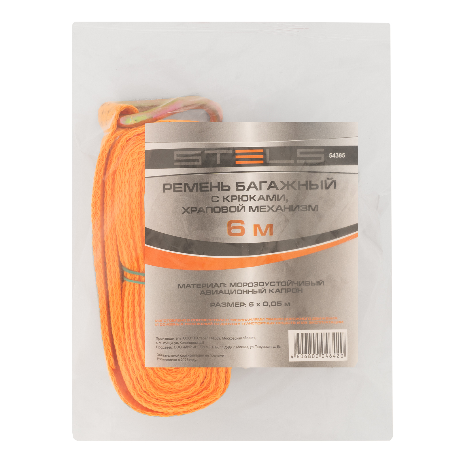 Ремень багажный с крюками, 0.05 х 6 м, храповой механизм Stels