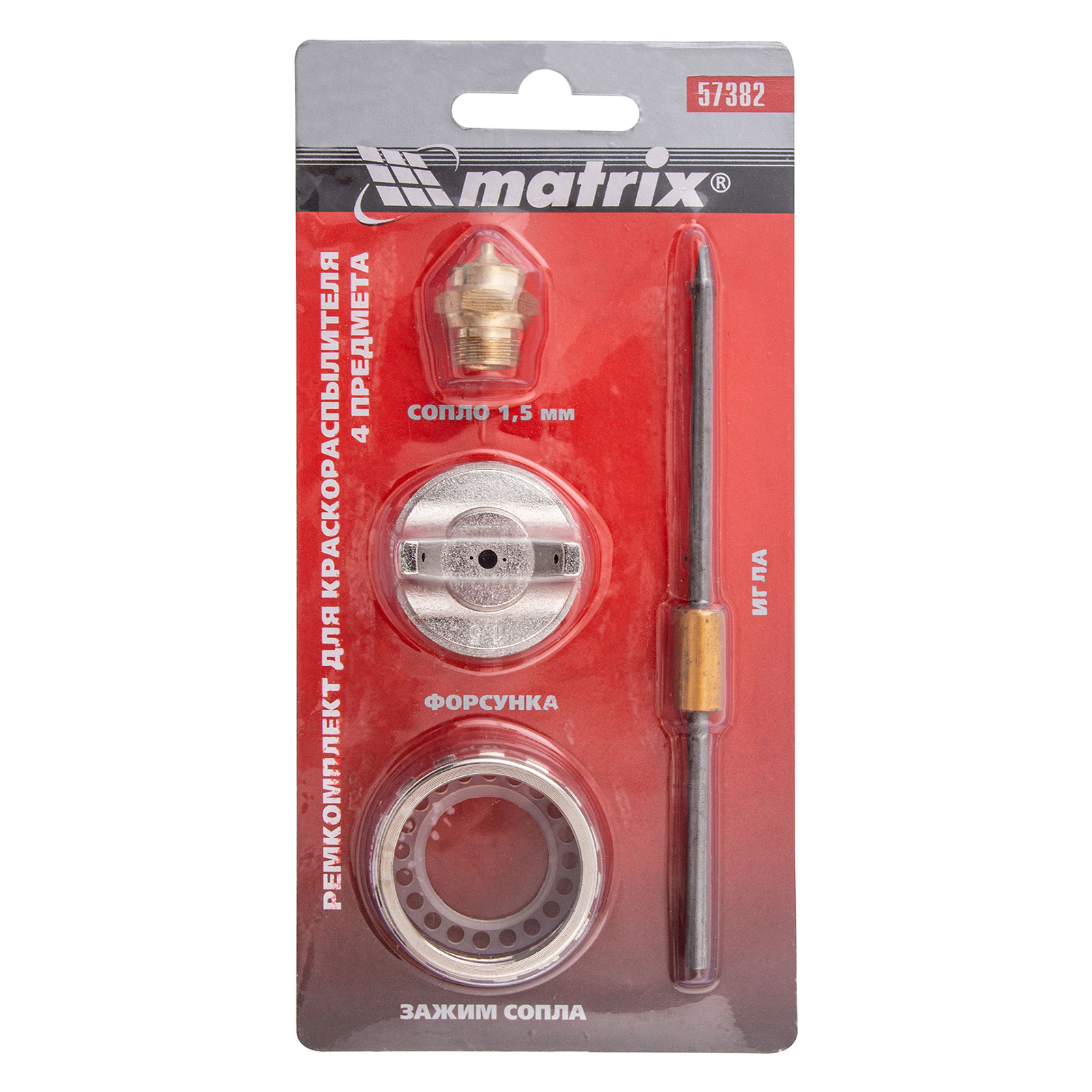 Ремкомплект для краскораспылителя 4 предмета : сопло 1.5 мм + игла + форсунка + зажим сопло Matrix