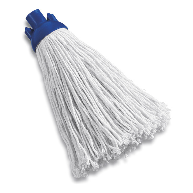 Экономичный не прошитый хлопковый верёвочный моп MASTER LUX имеет у основания пластиковое крепление синего цвета под алюминиевую ручку с резьбой. Верёвочный моп состоит из тонких скрученных хлопковых ниток. Хлопок обладает хорошими впитывающими свойствами. Насадку на швабру кентукки отжимают в ведре с отжимом для резьбовых мопов.