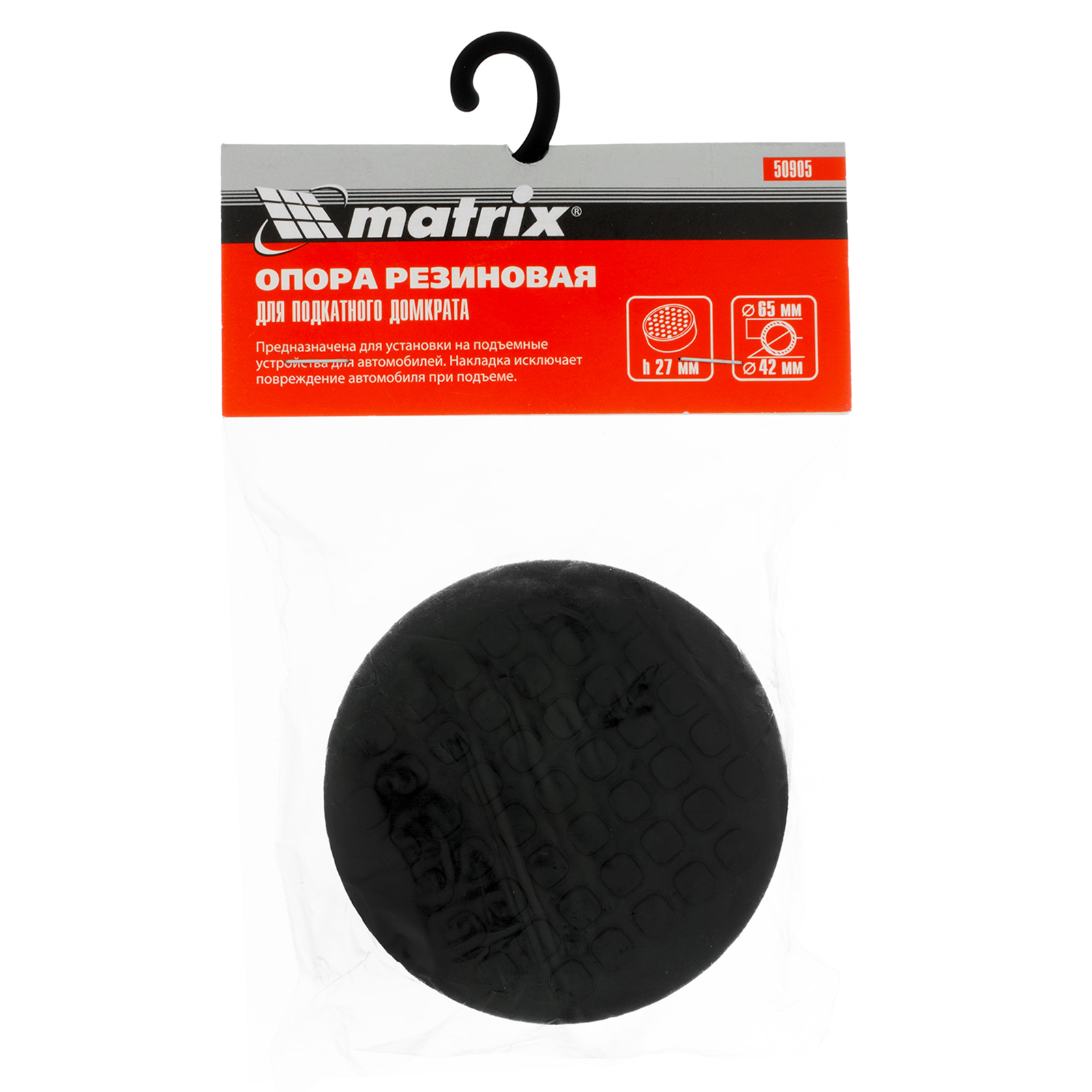Резиновая опора Matrix 50905 подходит к домкратам 510084, 510085, 51020, 51028, 51131, 51132, 51127, 51152, 51040. Она используется в качестве защиты для верхней части домкрата и кузова автомобиля, позволяет надежно зафиксировать транспортное средство при подъеме без риска появления царапин и вмятин.