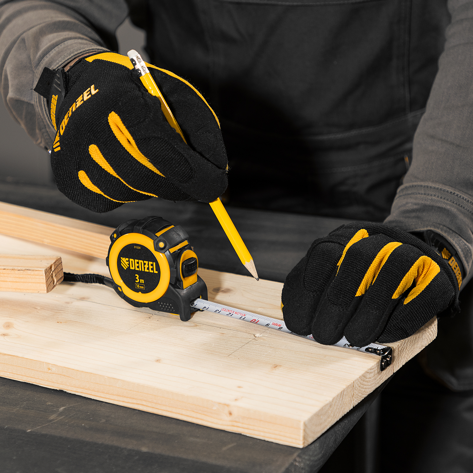 Рулетка Denzel 31520 с автоматической фиксацией полотна размером 3 м х 16 мм, с нейлоновым покрытием, магнитным зацепом и двухсторонней разметкой, предназначена для измерения расстояний и определения габаритов различных предметов. Лента автоматически фиксируется в вытянутом положении, что упрощает работу. Рулетка будет полезна во время строительных и ремонтных работ.