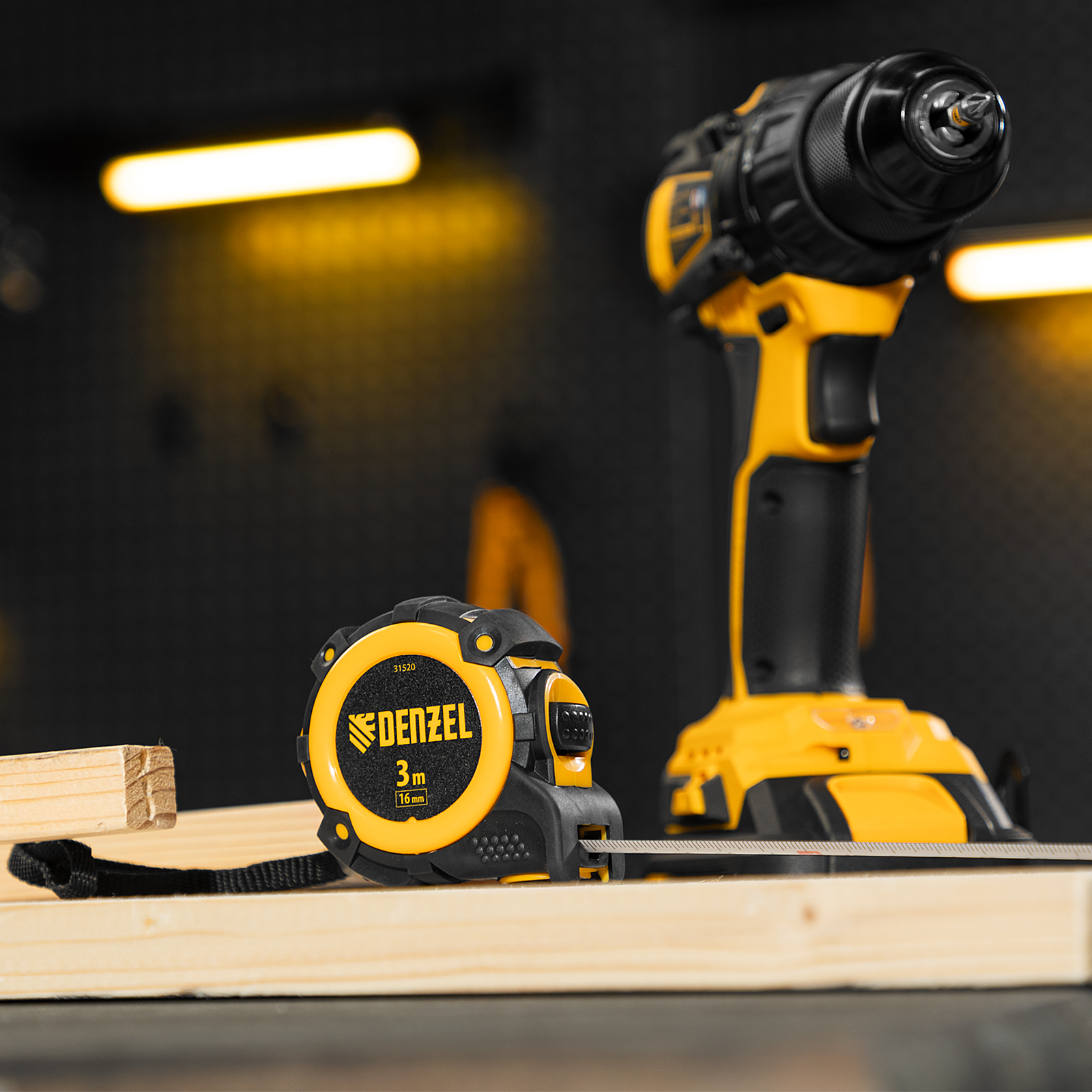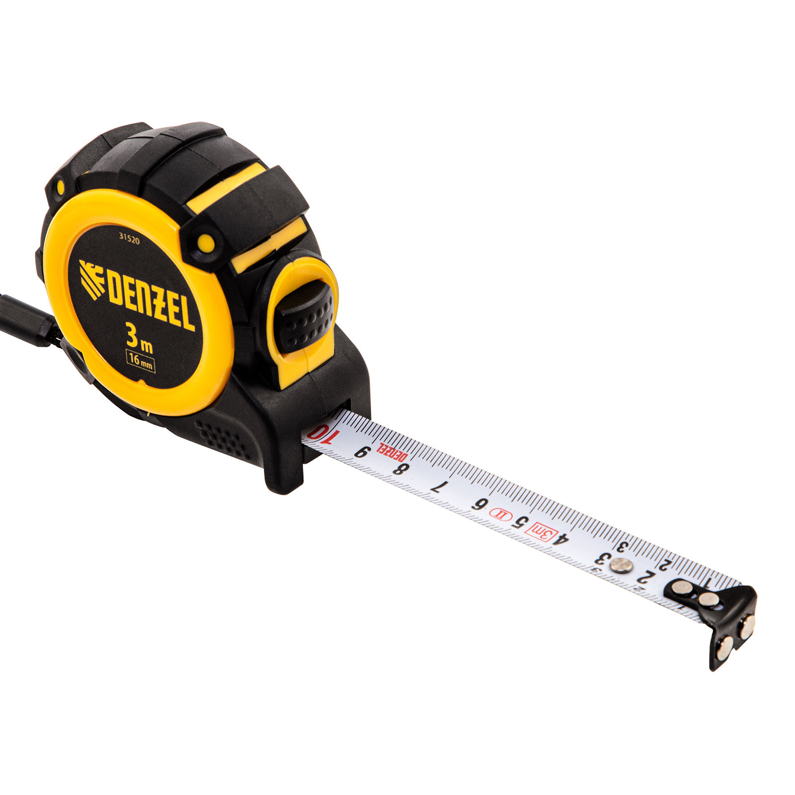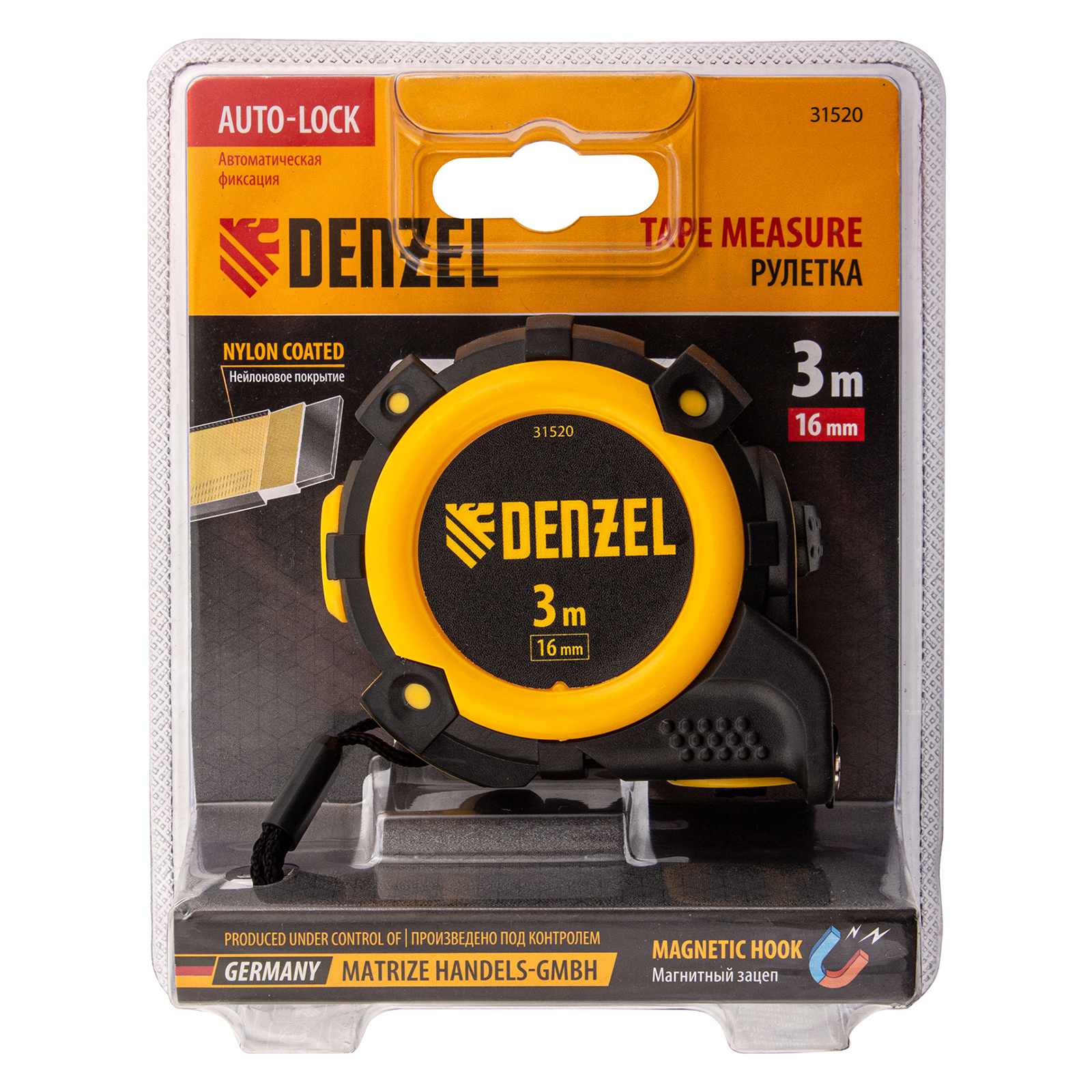 Рулетка 3м х 16мм, автоматич. фиксац., нейлон. покрытие, магнит. зацеп, двухстор. разметка Denzel