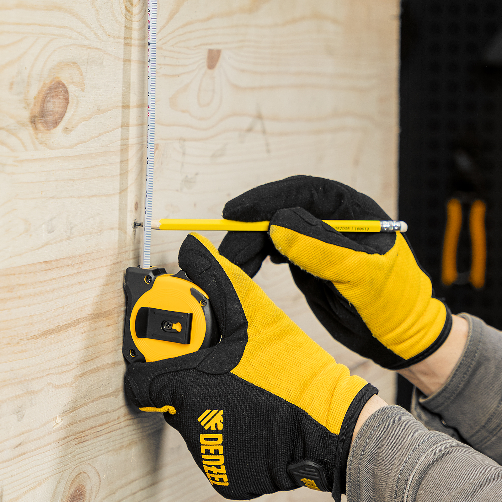 - Удобная фиксация на ремне — рулетка дополнена поясным зажимом.