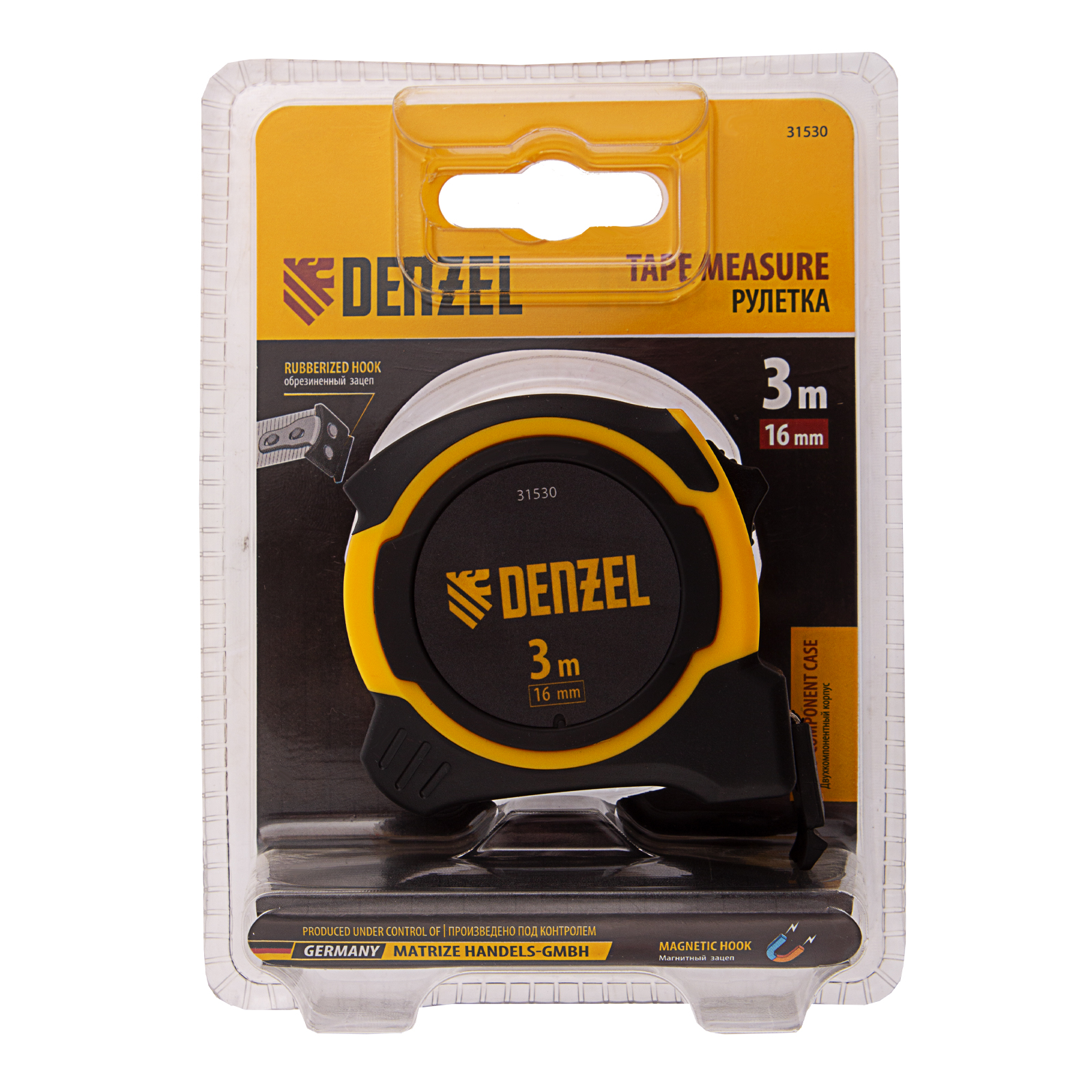 Рулетка 3м х 16мм, двухкомп. корпус, магнитный обрезиненный зацеп Denzel в Казани