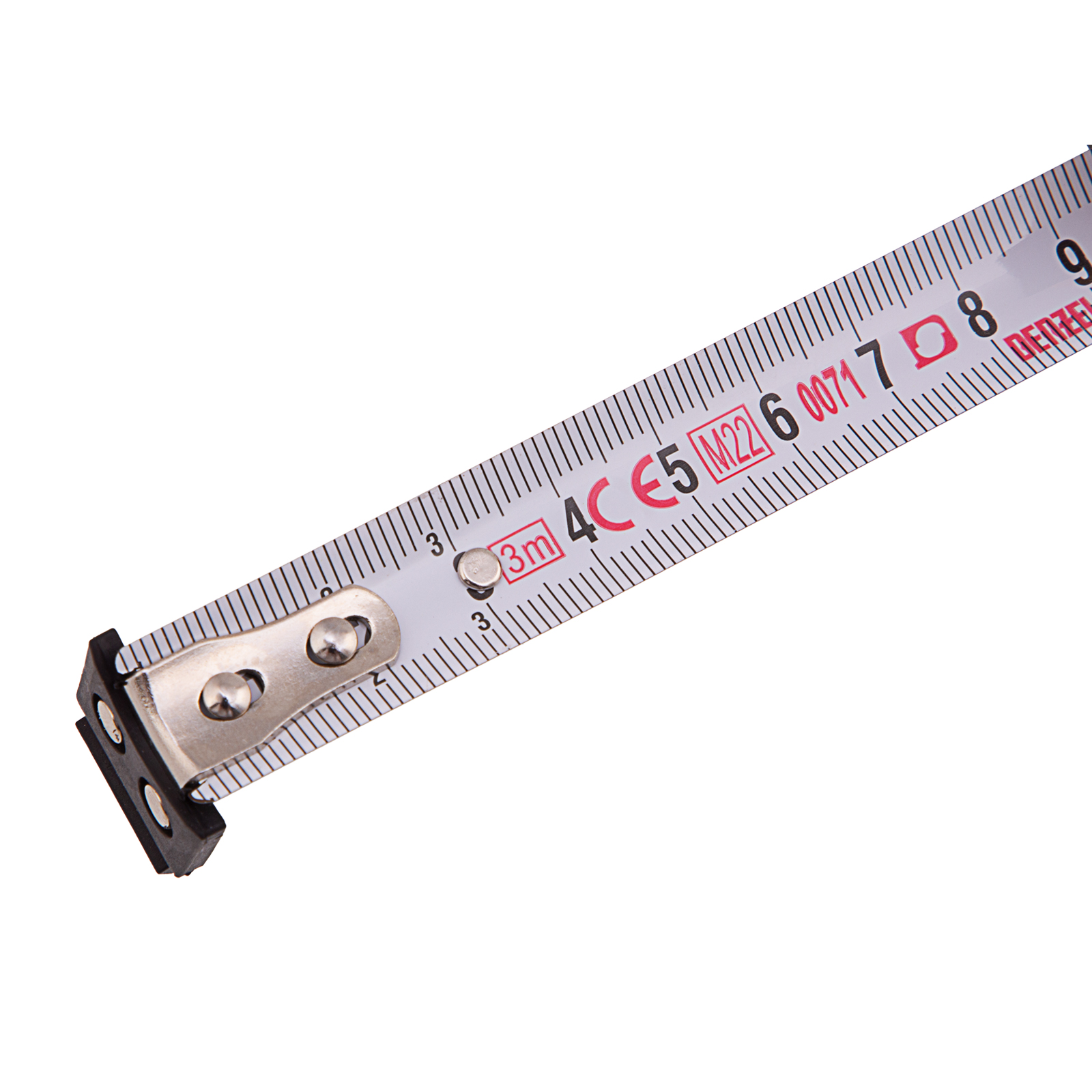 - Надежность — стальная лента с эмалевым покрытием и защитной пластиной в месте крепления зацепа выдерживает интенсивное использование.